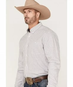 Rank 45 Men’s Fishing Small Plaid Long Sleeve Button-Down Western Shirt – Big & Tall White
