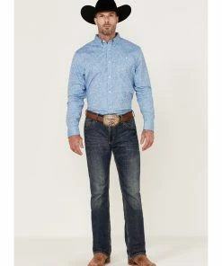 Rank 45 Men’s Bulldogger Dobby Geo Button-Down Western Shirt Blue