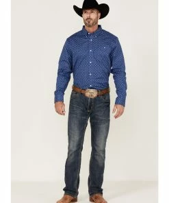 Rank 45 Men’s High Roller Geo Print Long Sleeve Button-Down Western Shirt Blue