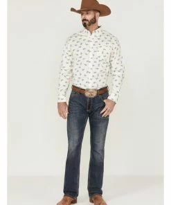 Rank 45 Men’s Mash Up Floral Geo Print Long Sleeve Button-Down Western Shirt – Big & Tall White
