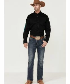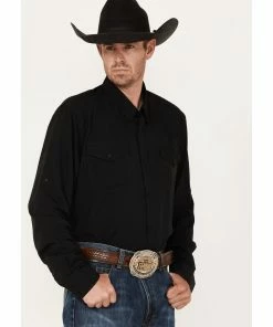 Rank 45 Men’s Solid Maroon Basic Twill Logo Long Sleeve Button-Down Western Shirt – Big & TallÂ