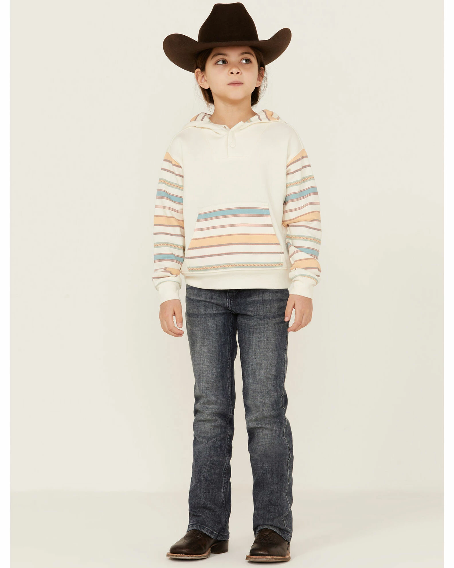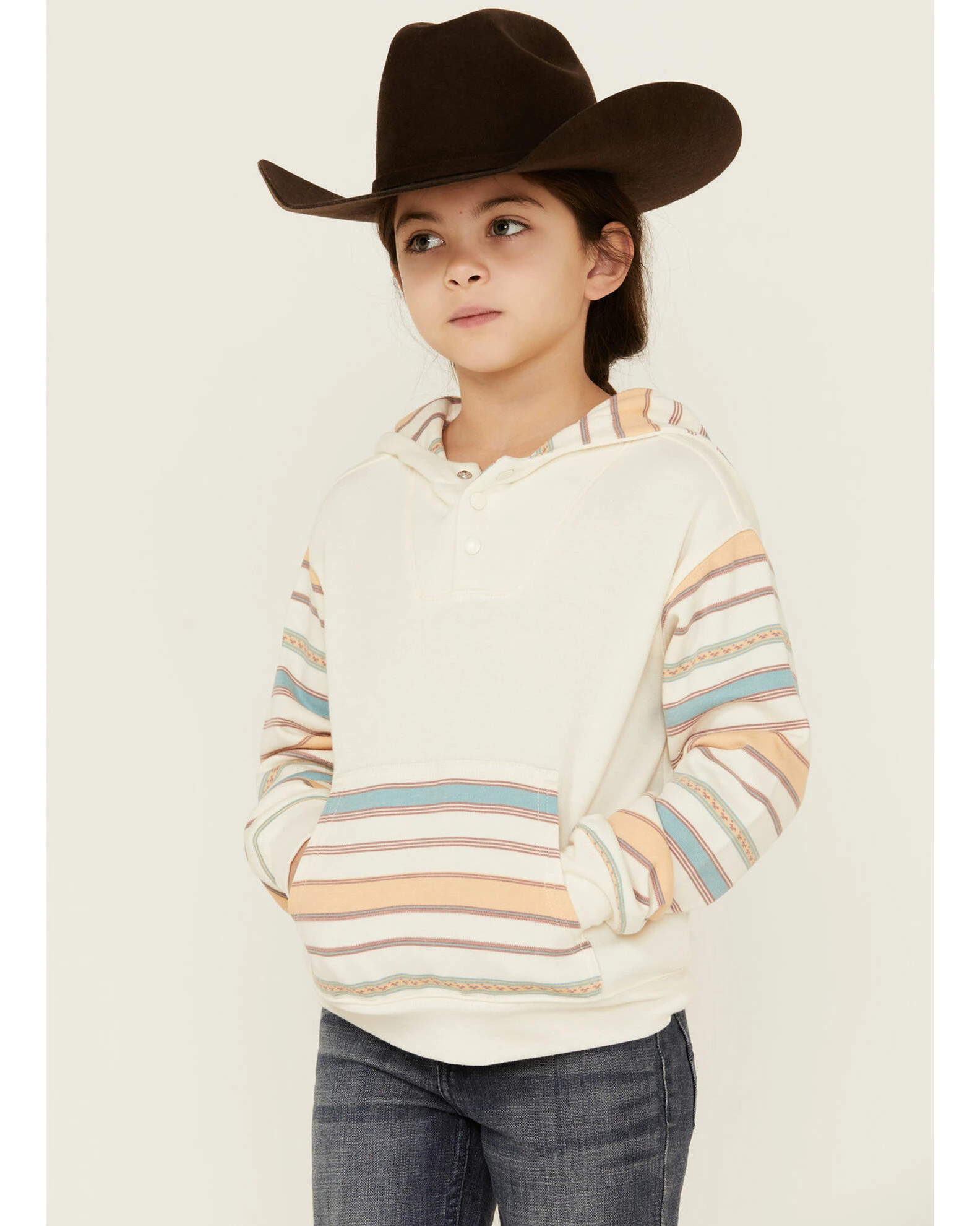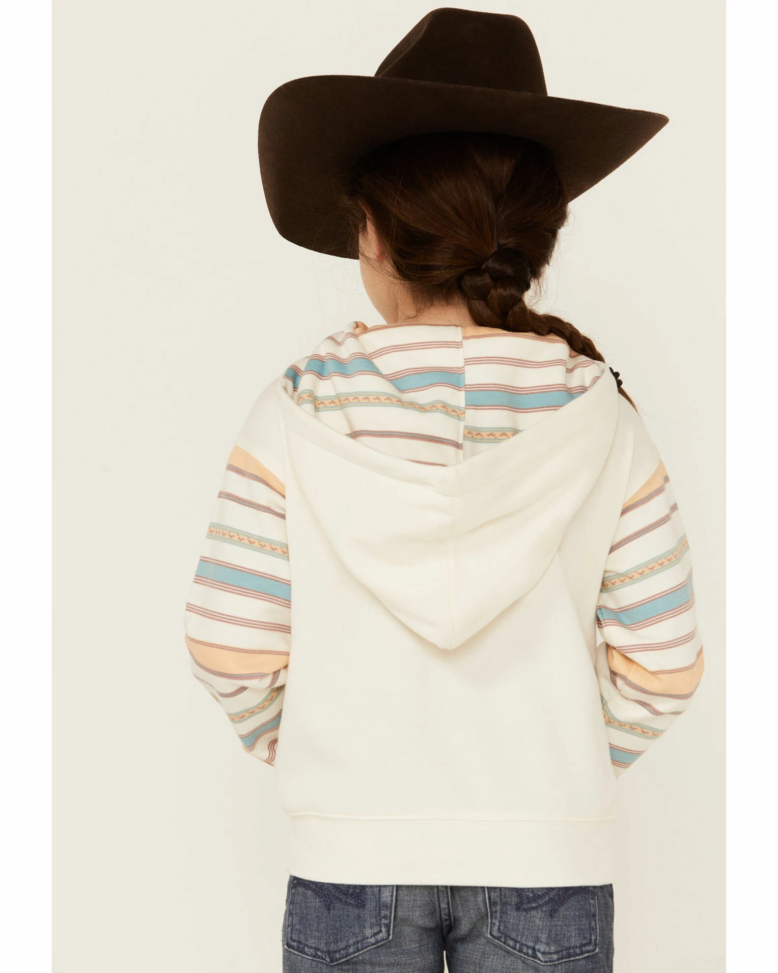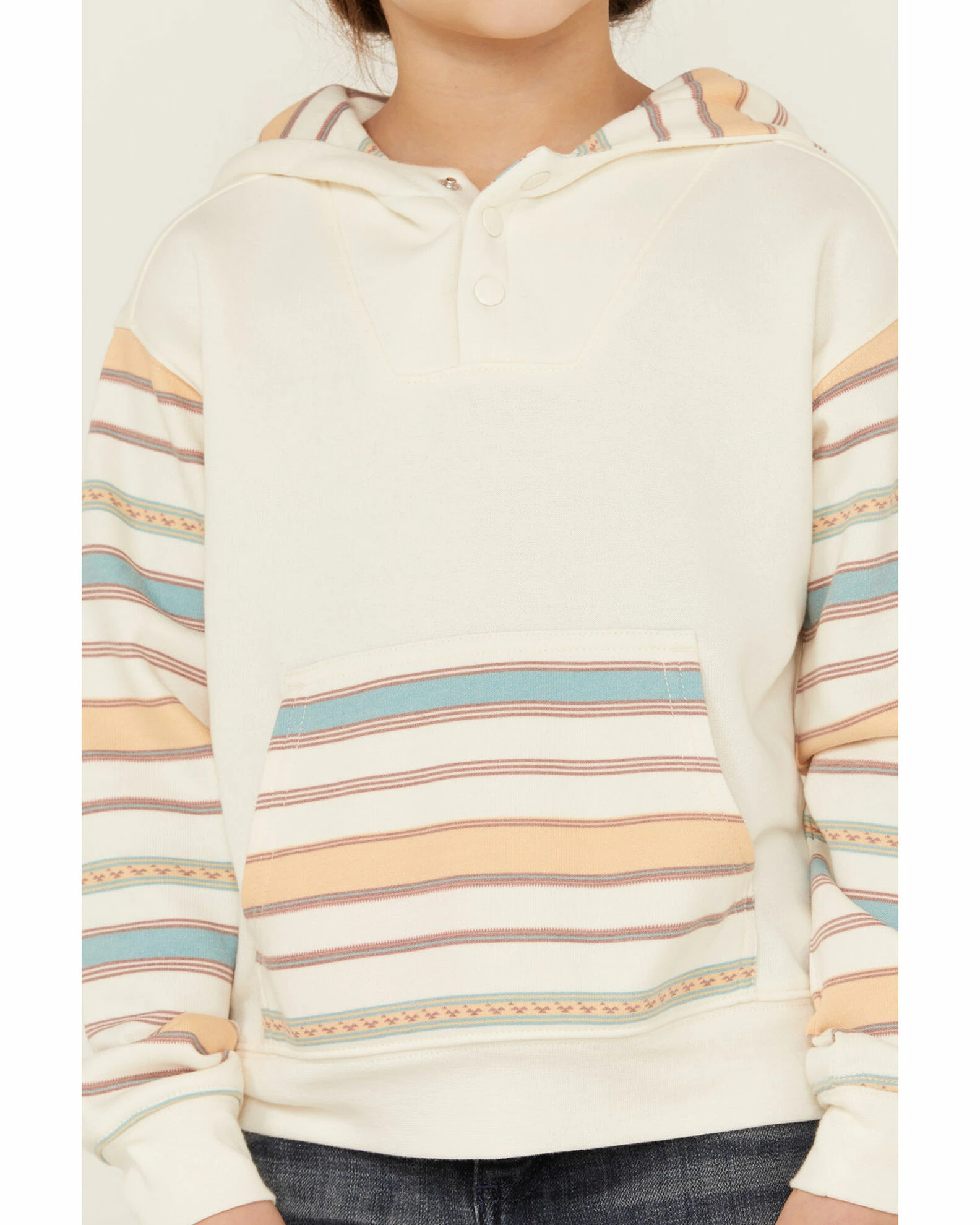 Rank 45 Girls’ Multicolored Stripe Sleeve Pullover Hooded Sweate Ivory