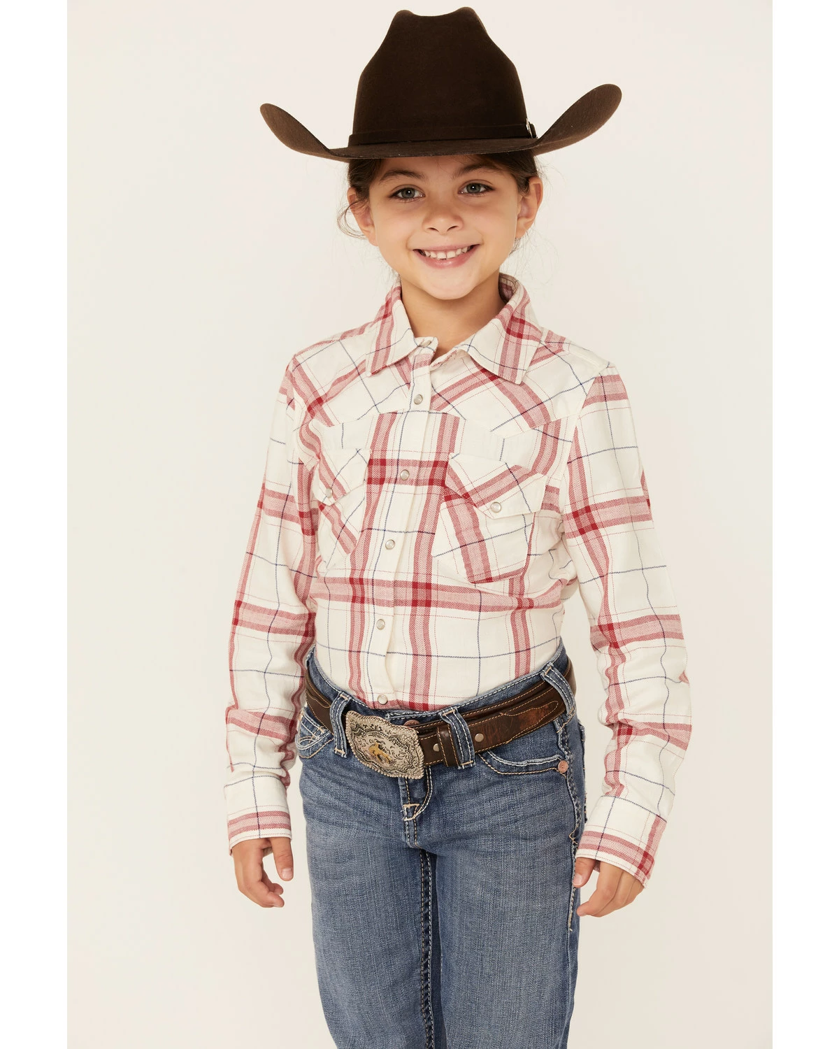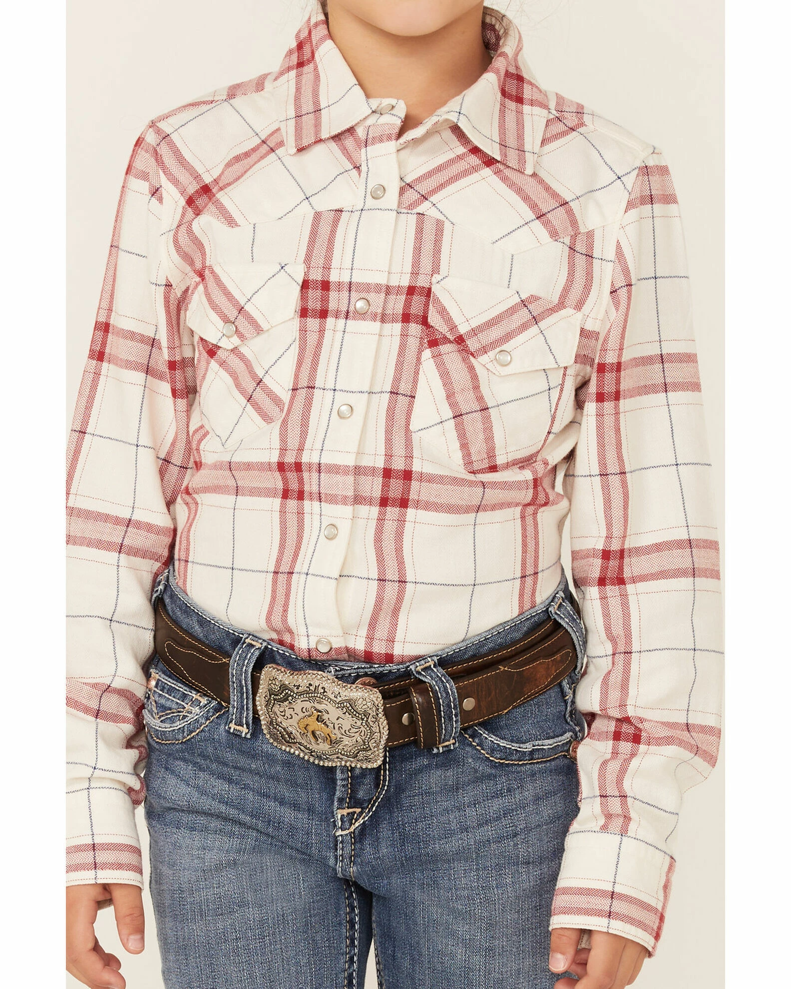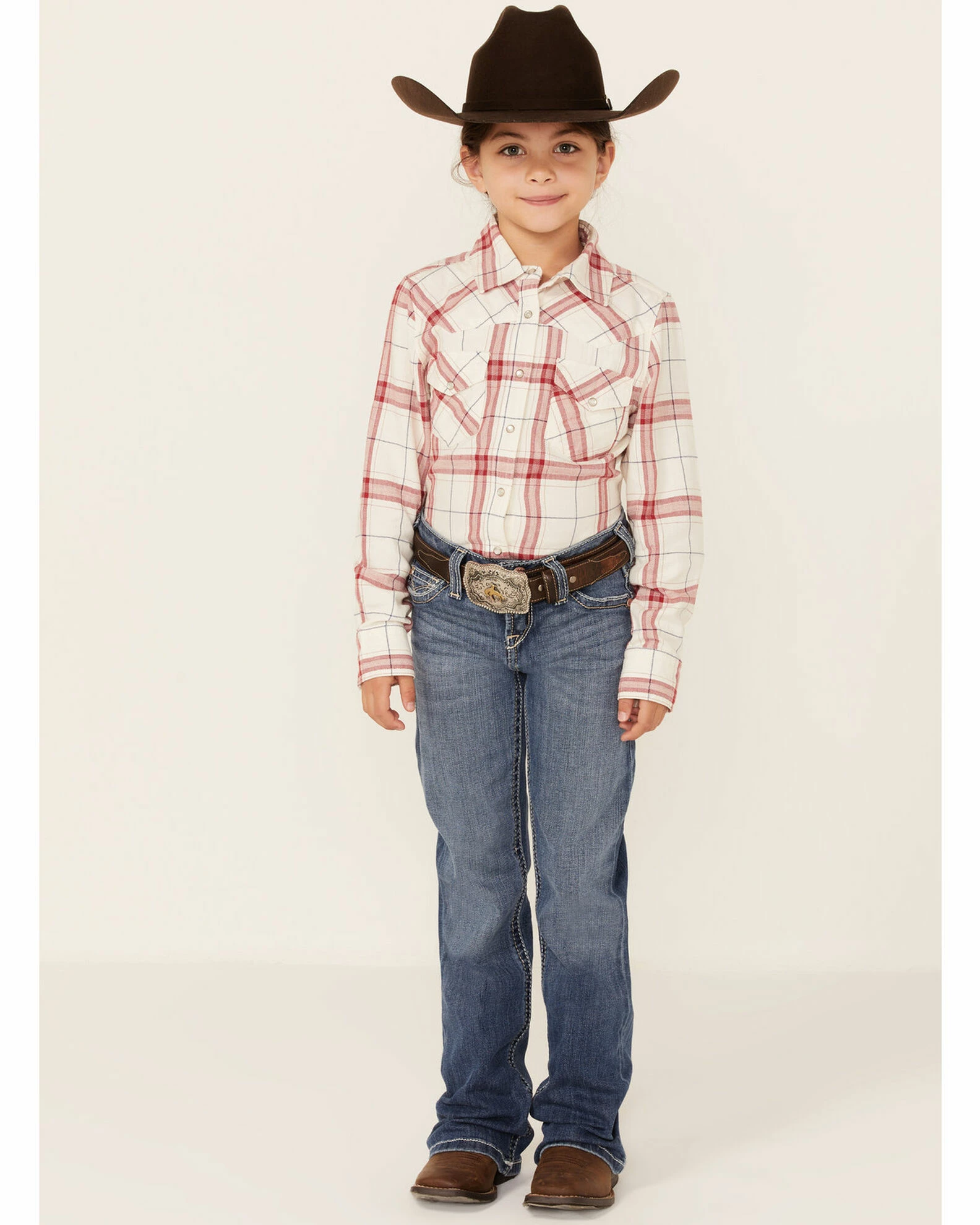 Rank 45 Girls’ Pink Plaid Long Sleeve Snap Western Shirt White