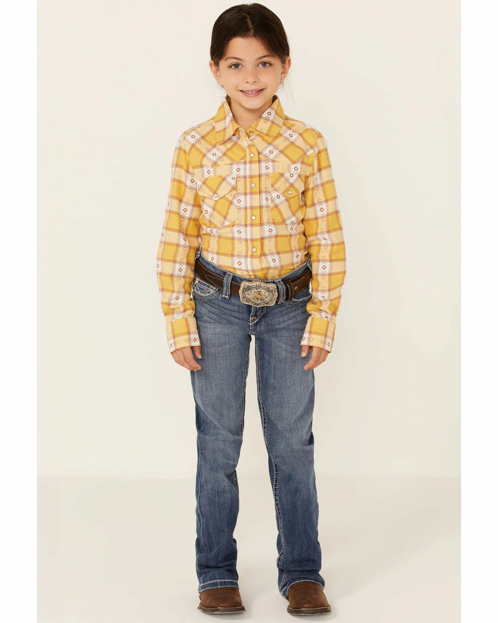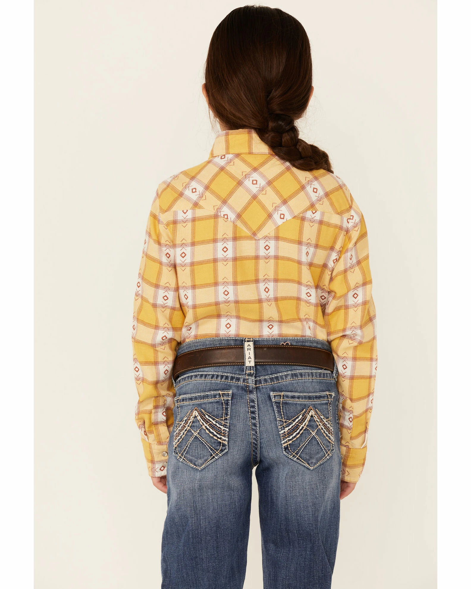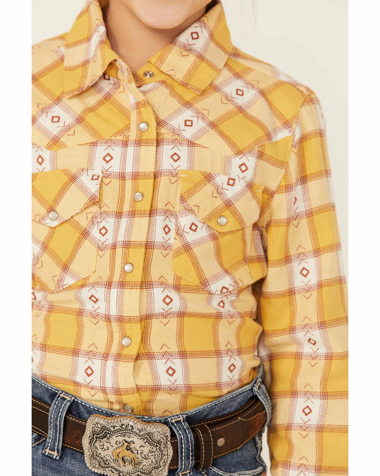 Rank 45 Girls’ Yellow Southwestern Plaid Long Sleeve Snap Western Shirt