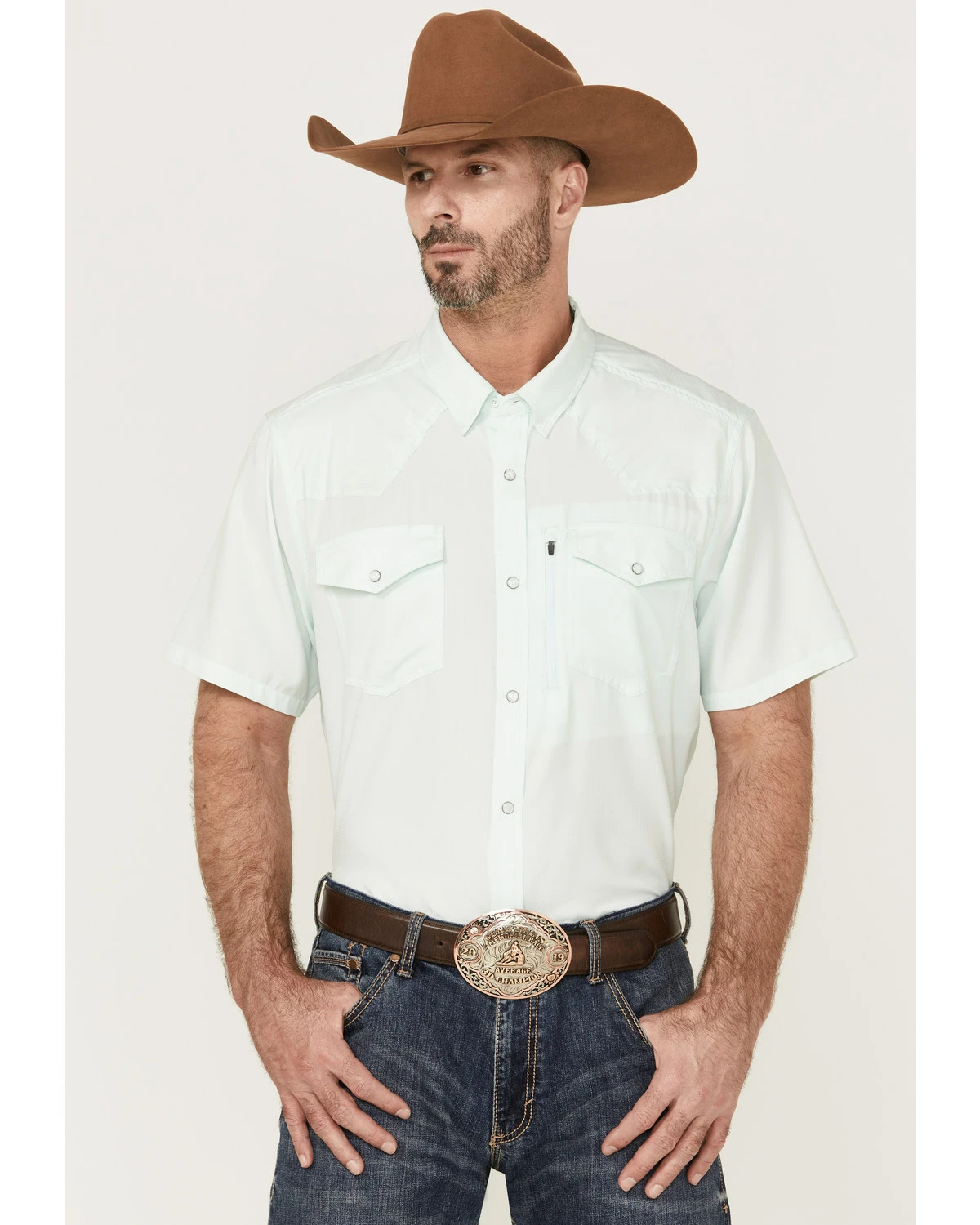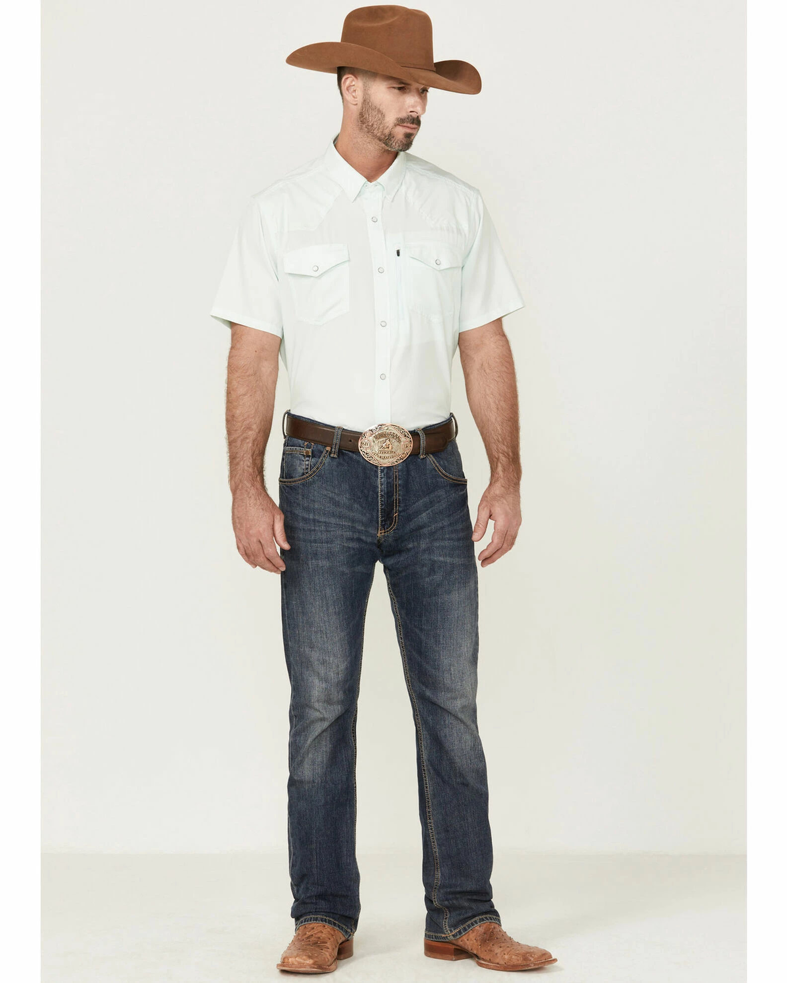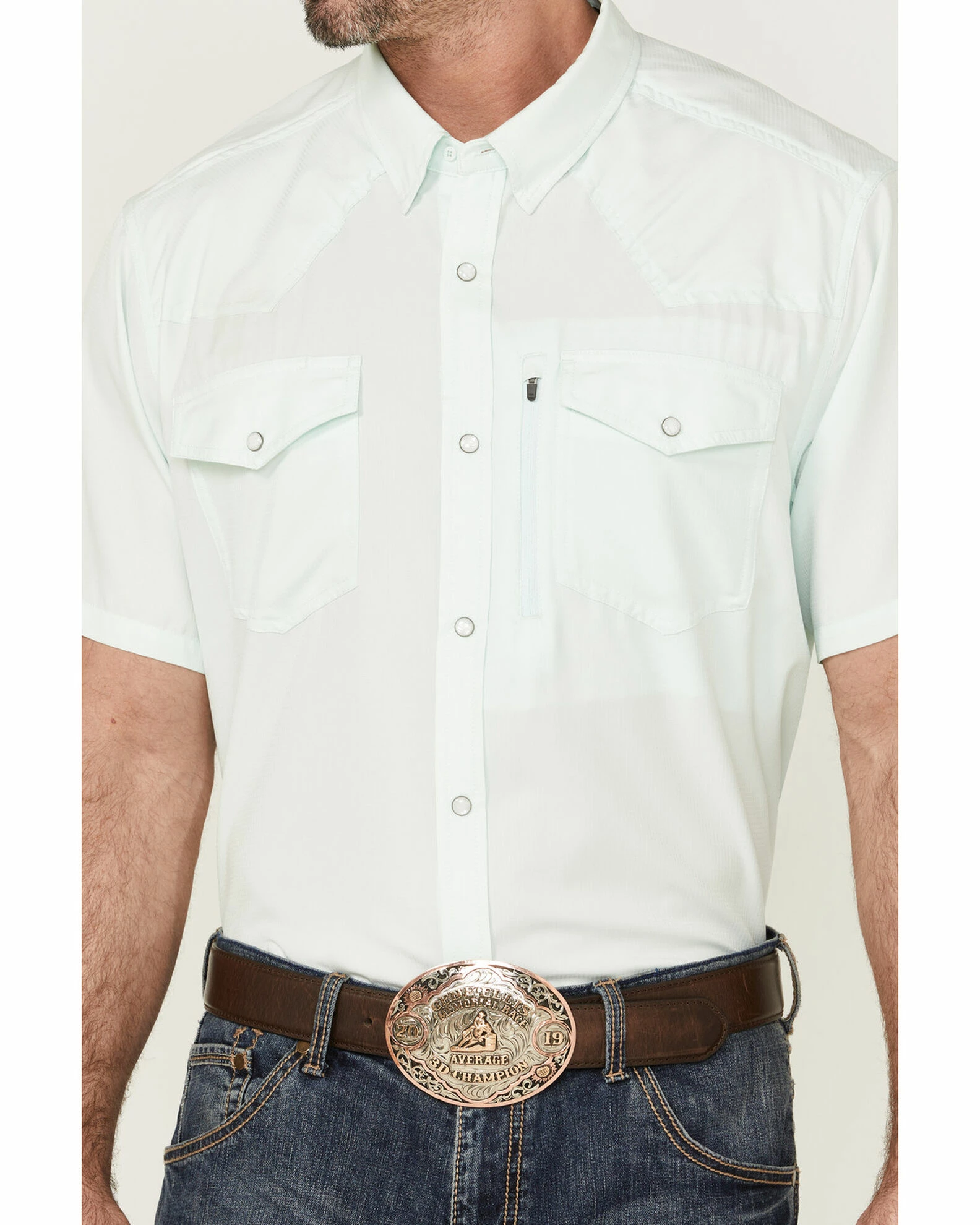 Rank 45 Men’s 8 Seconds Short Sleeve Snap Western Tech Shirt Aqua