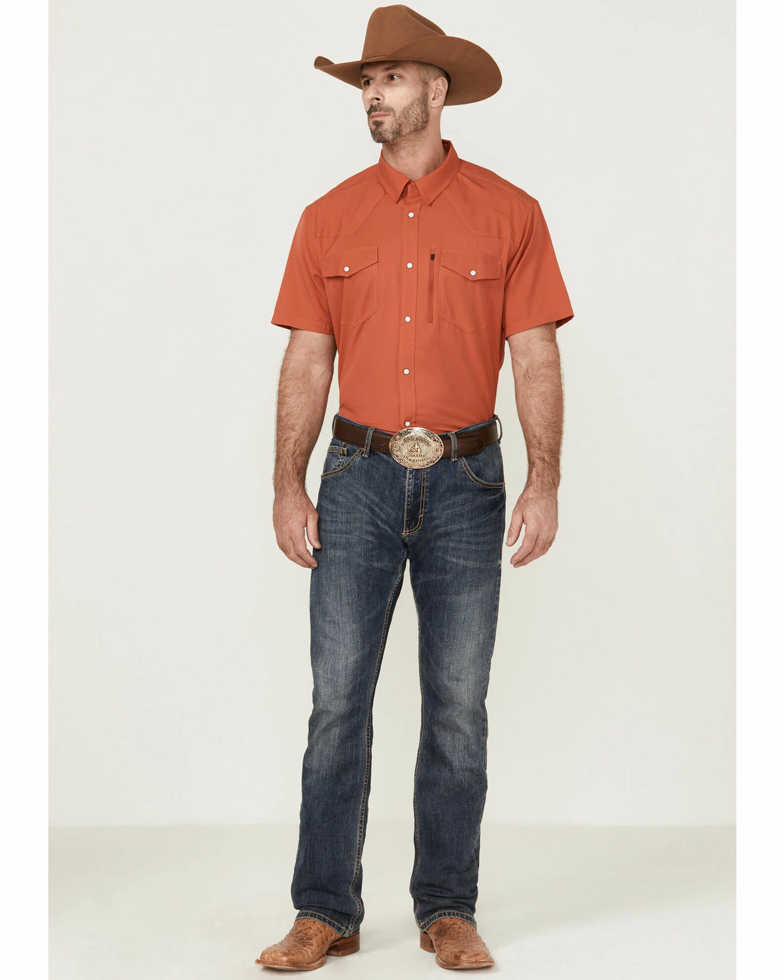 Rank 45 Men’s 8 Seconds Short Sleeve Snap Western Tech Shirt Medium Red