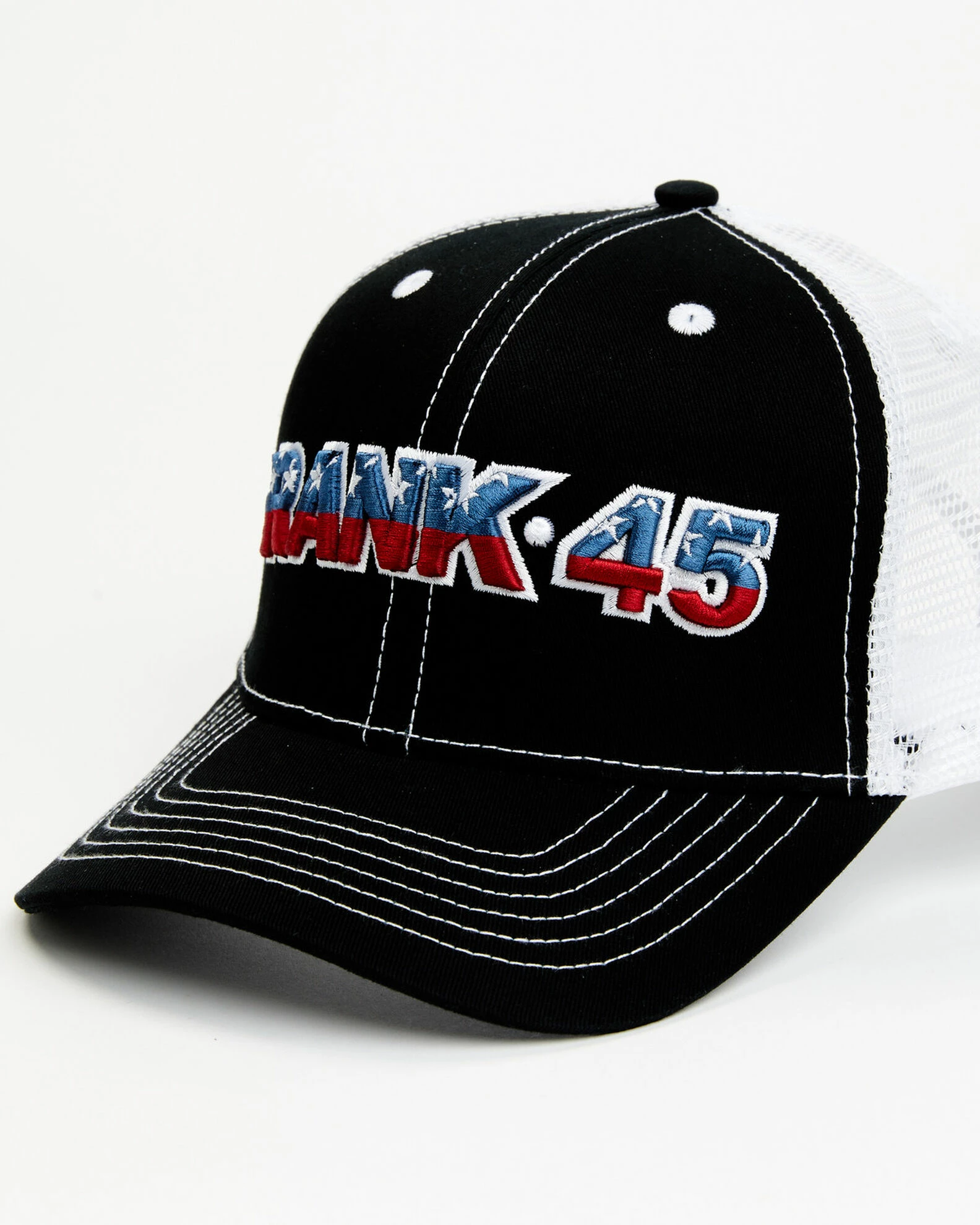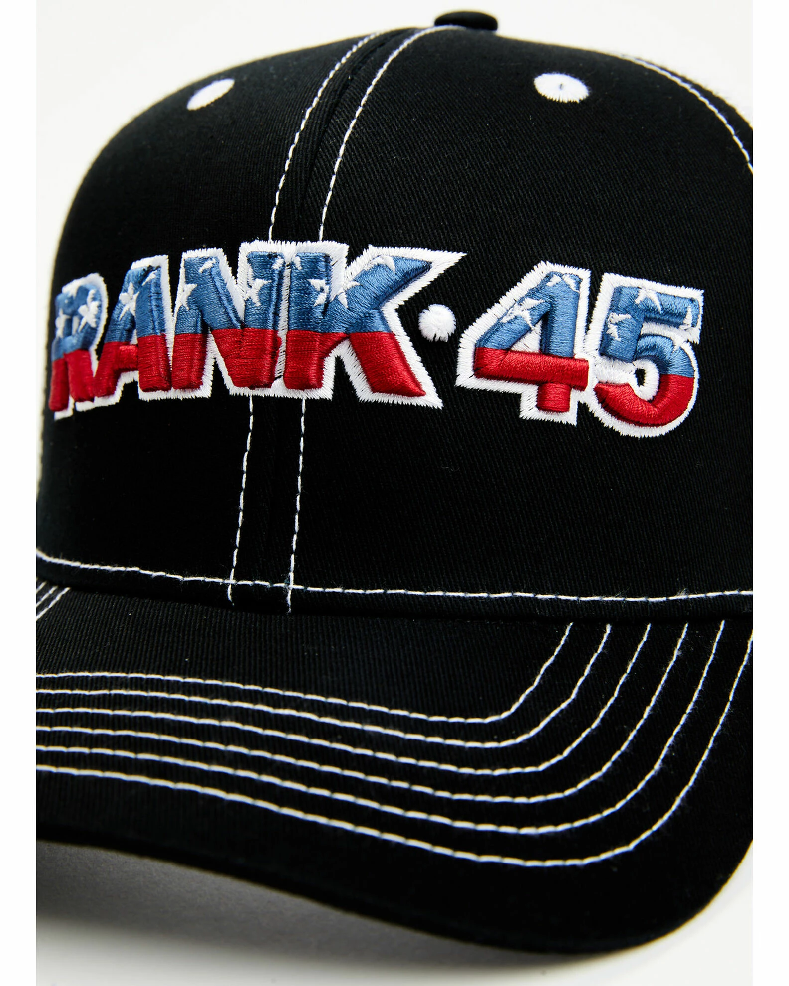 Rank 45 Men’s Black Embroidered Flag Logo Mesh-Back Ball Cap