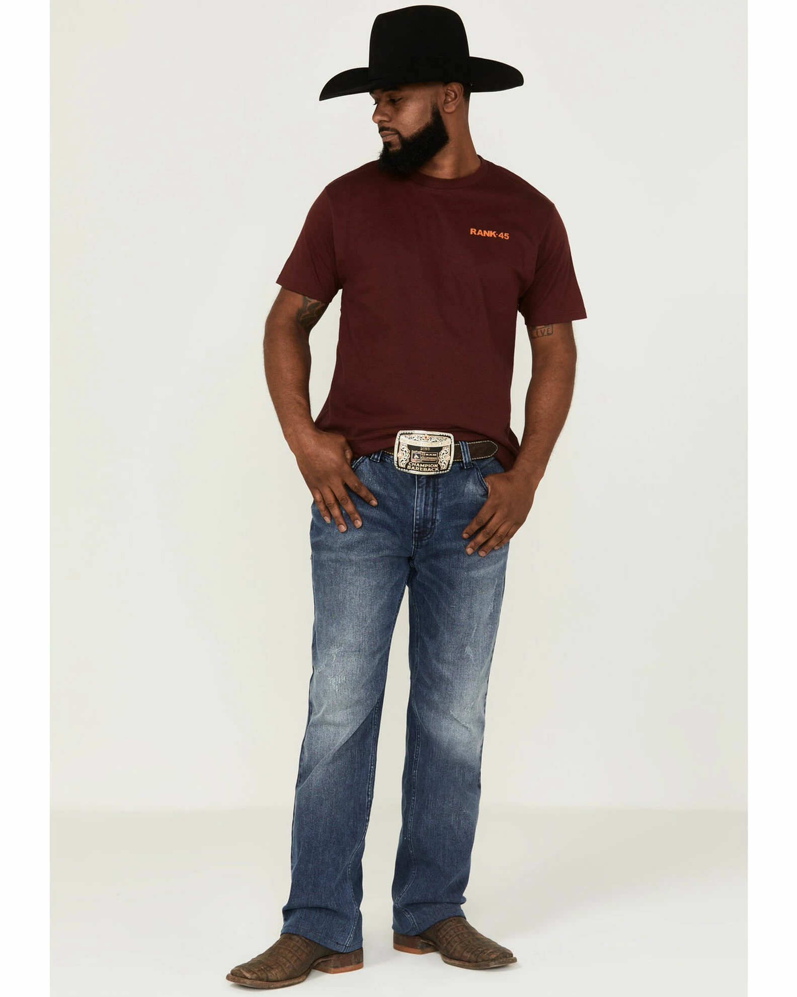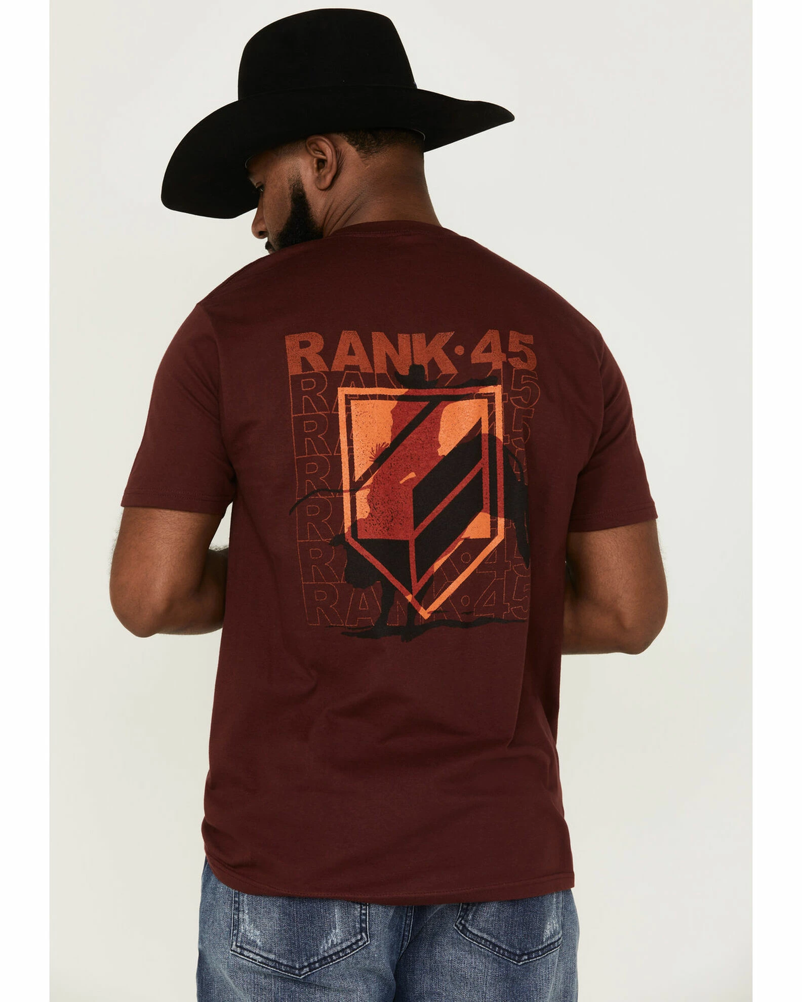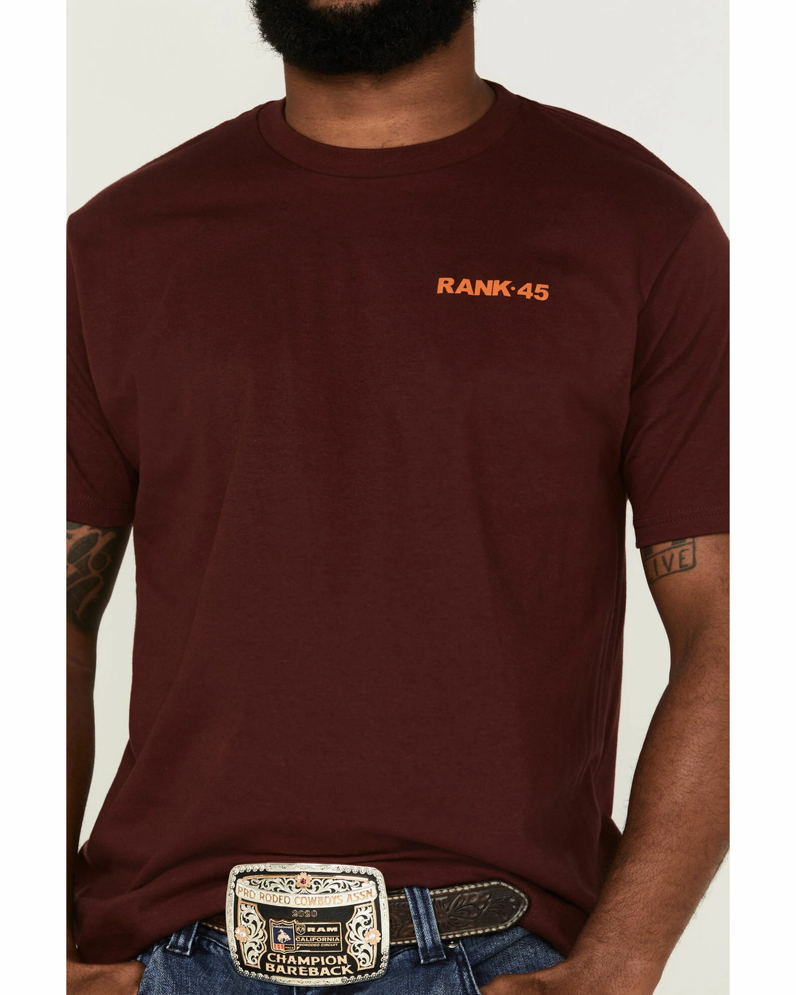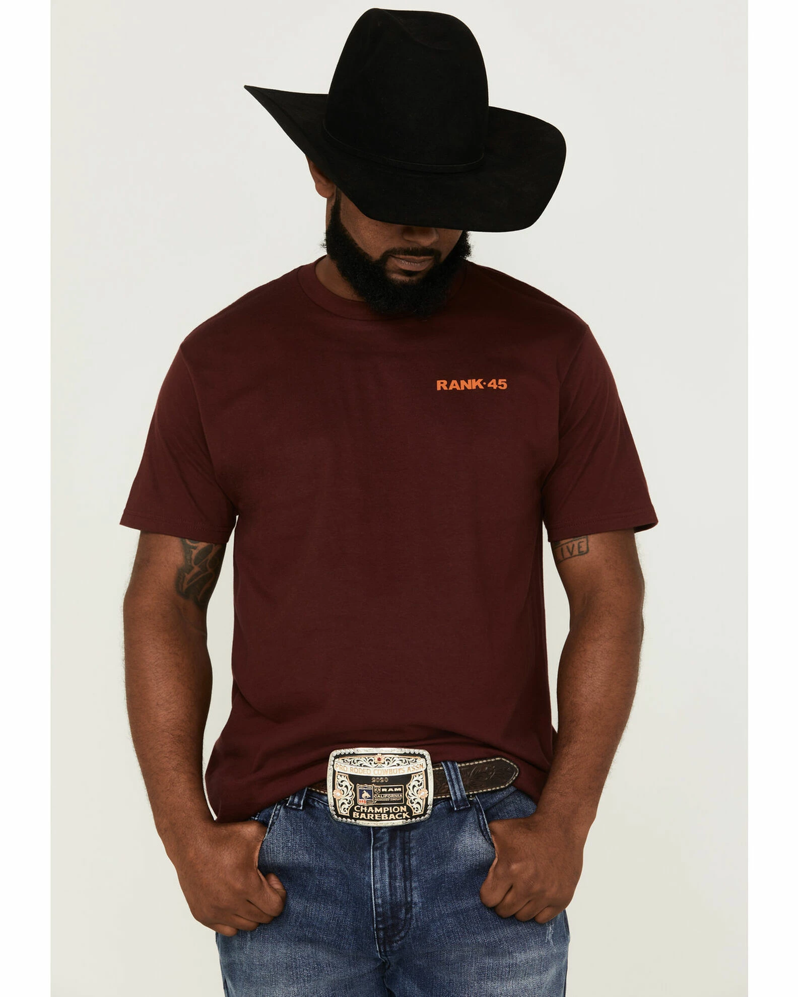 - “Rank 45” stacked logo with bucking scene graphic on back