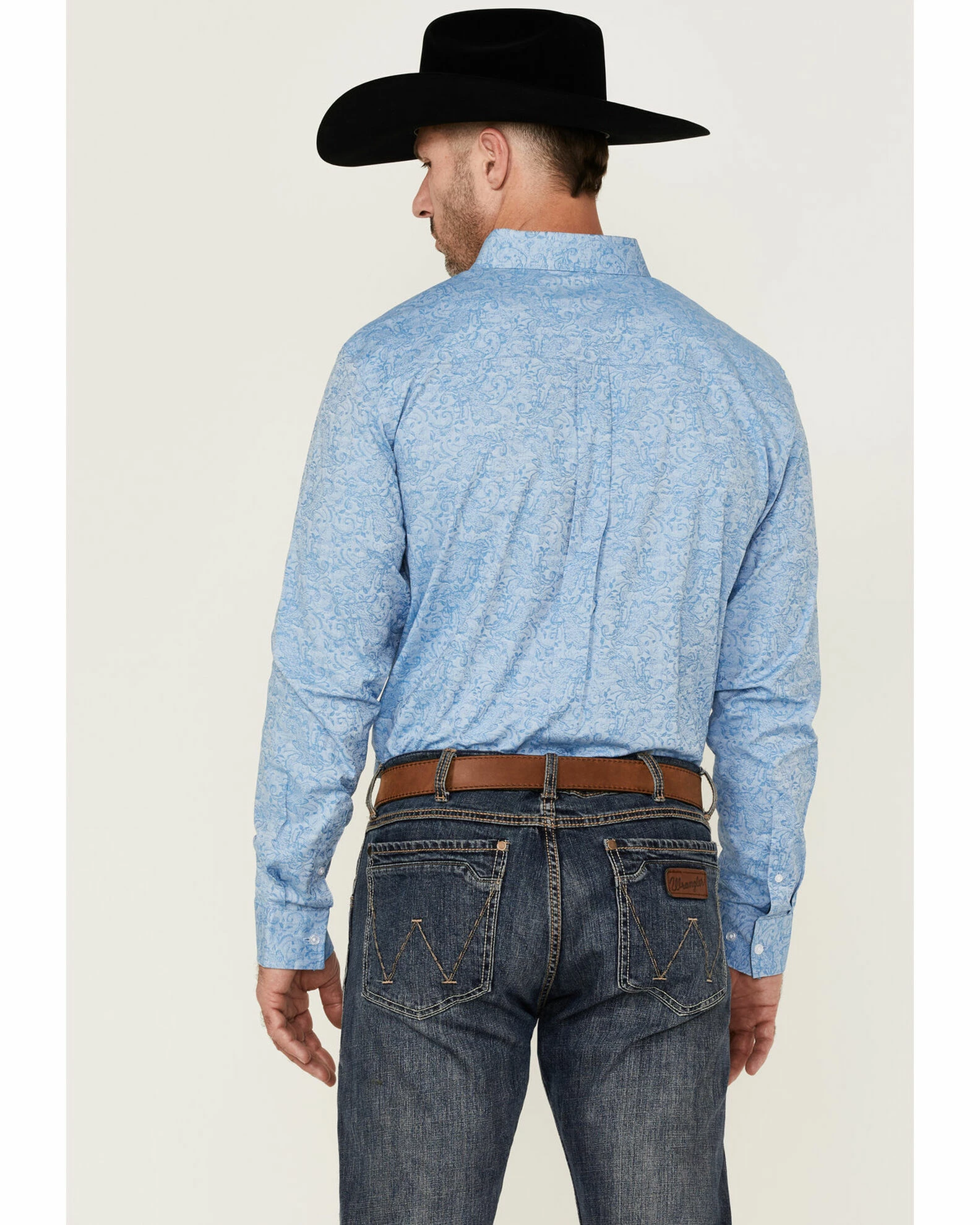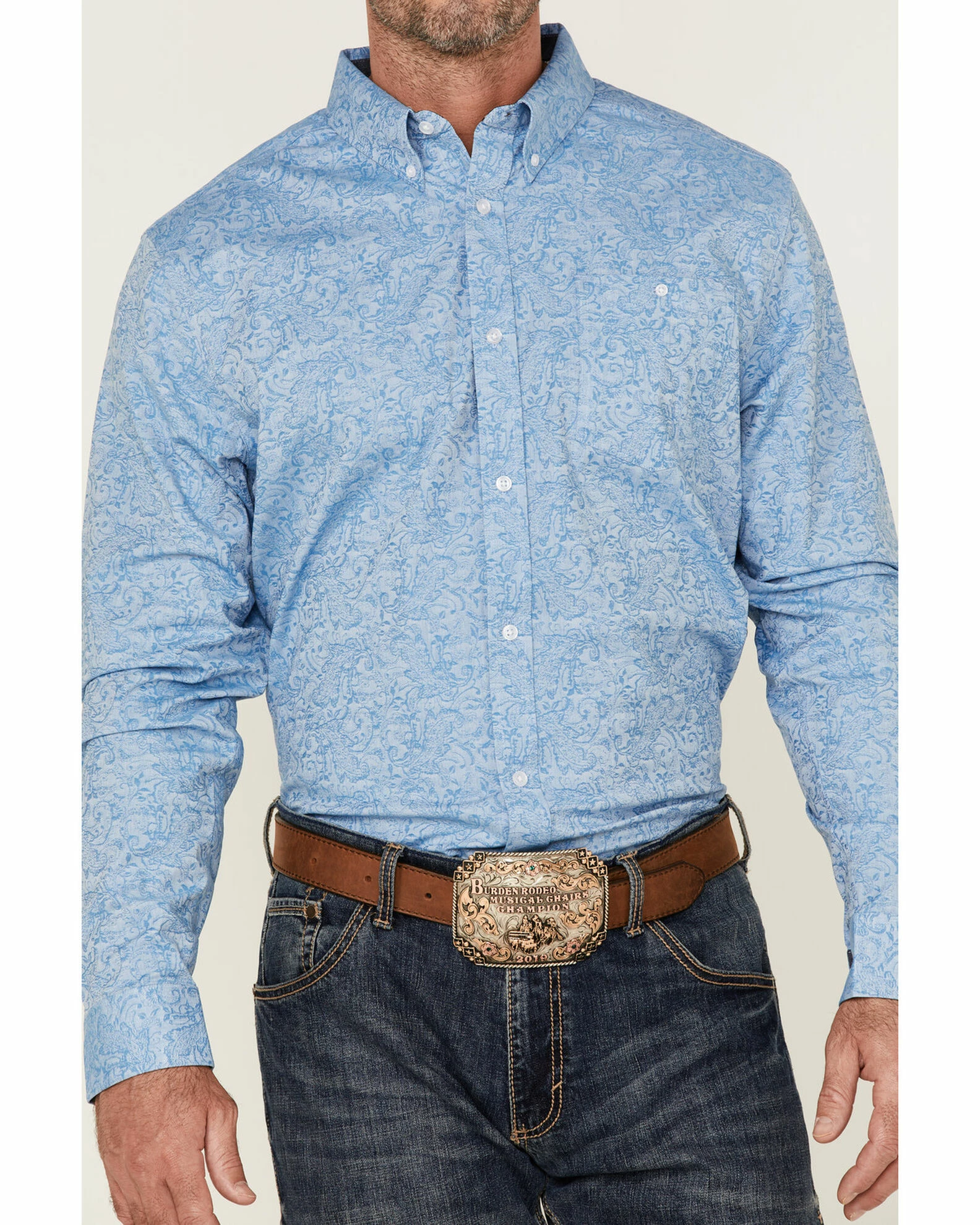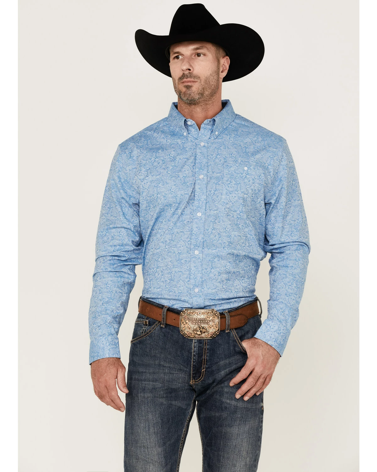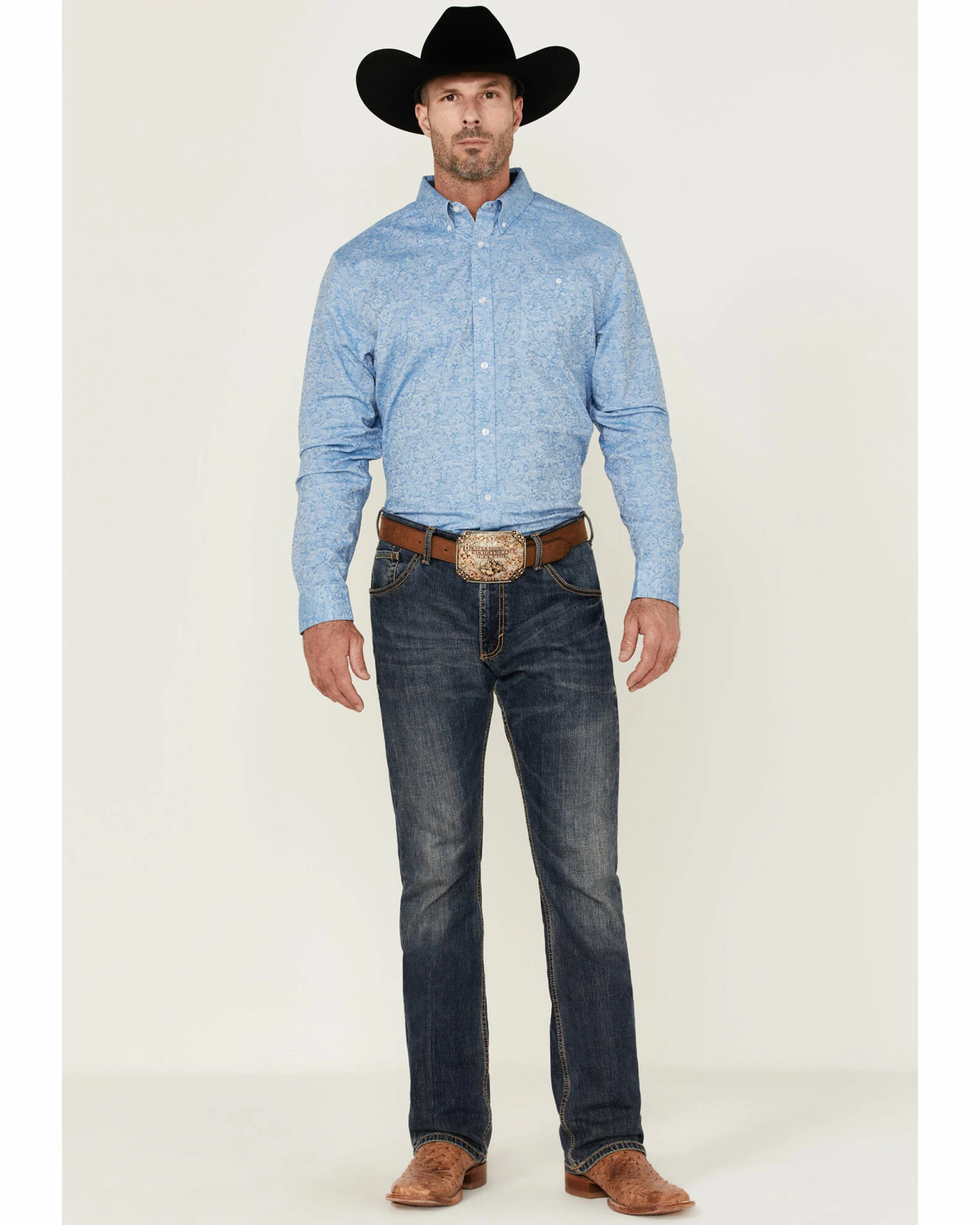 Rank 45 Men’s Floater Paisley Print Long Sleeve Button-Down Western Shirt Blue