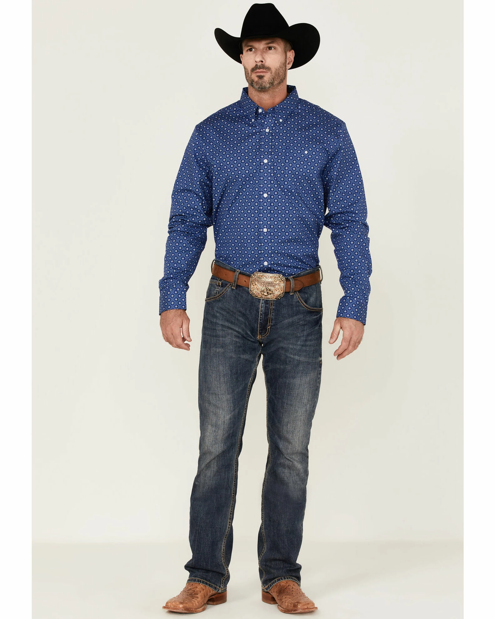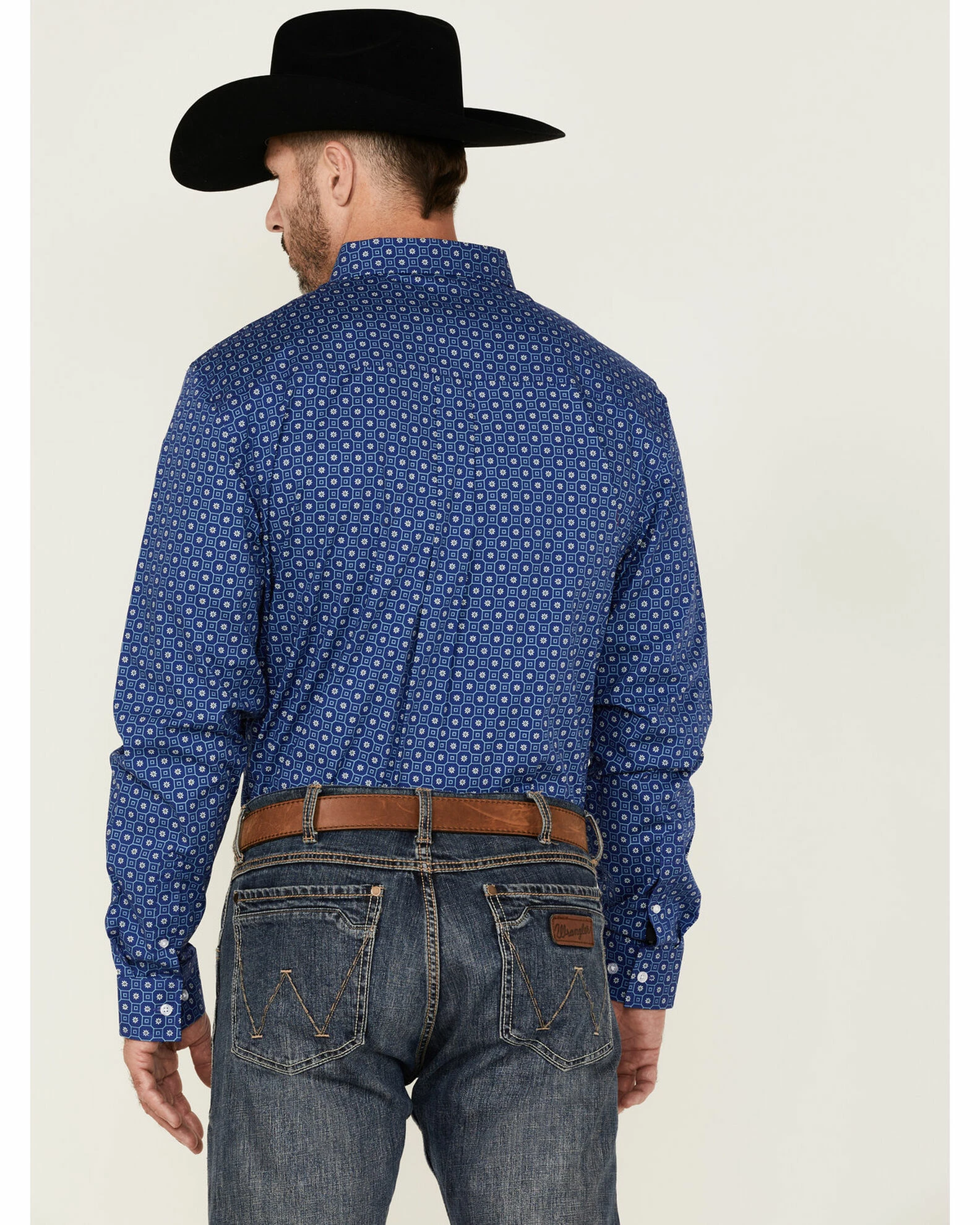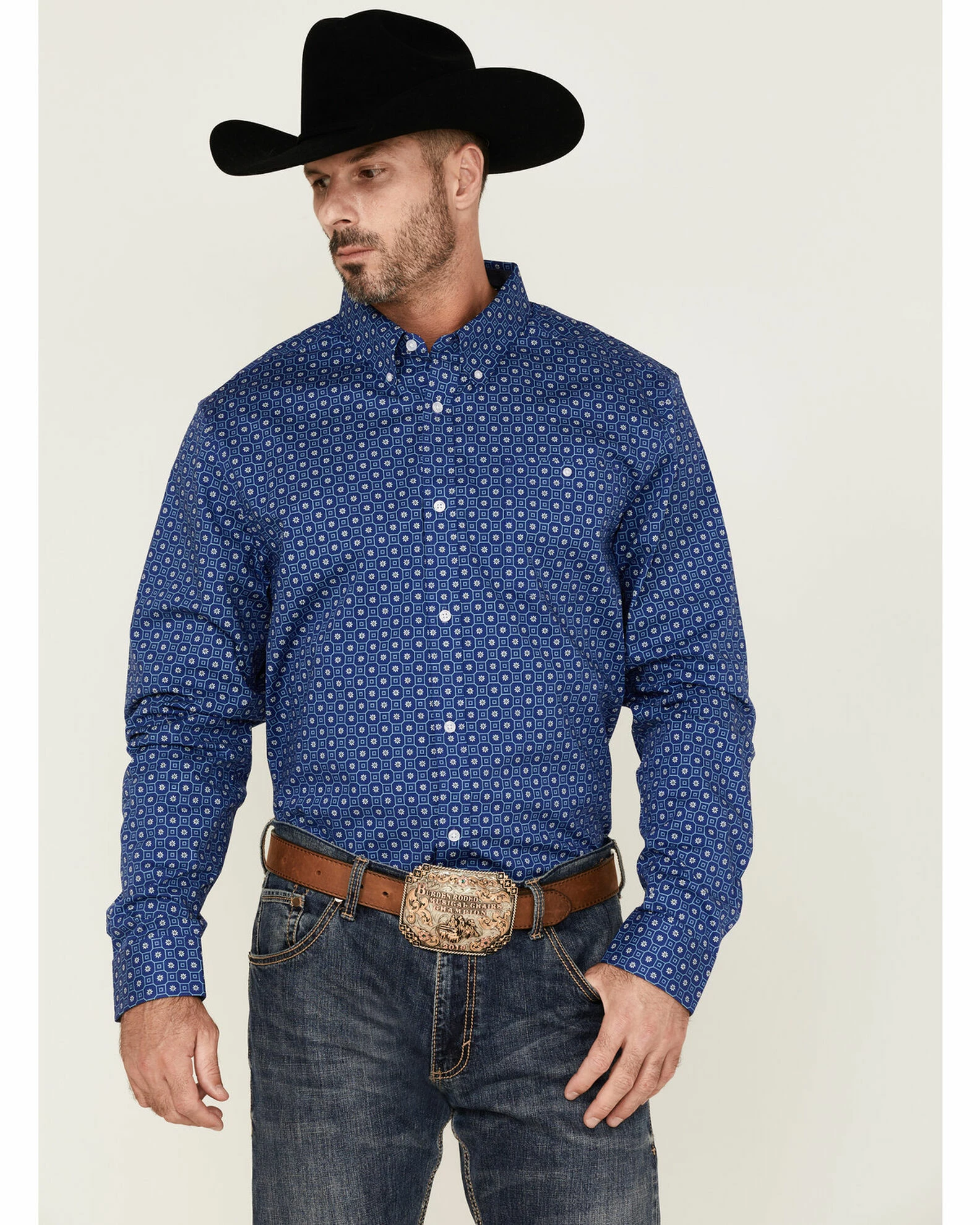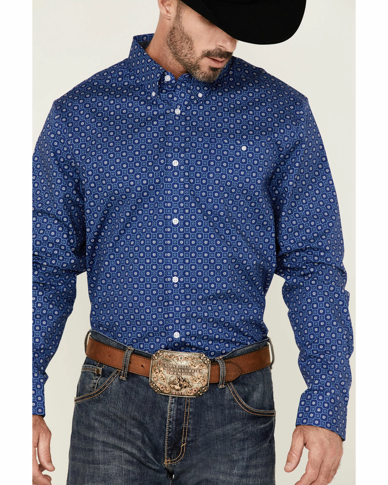 Rank 45 Men’s High Roller Geo Print Long Sleeve Button-Down Western Shirt Blue