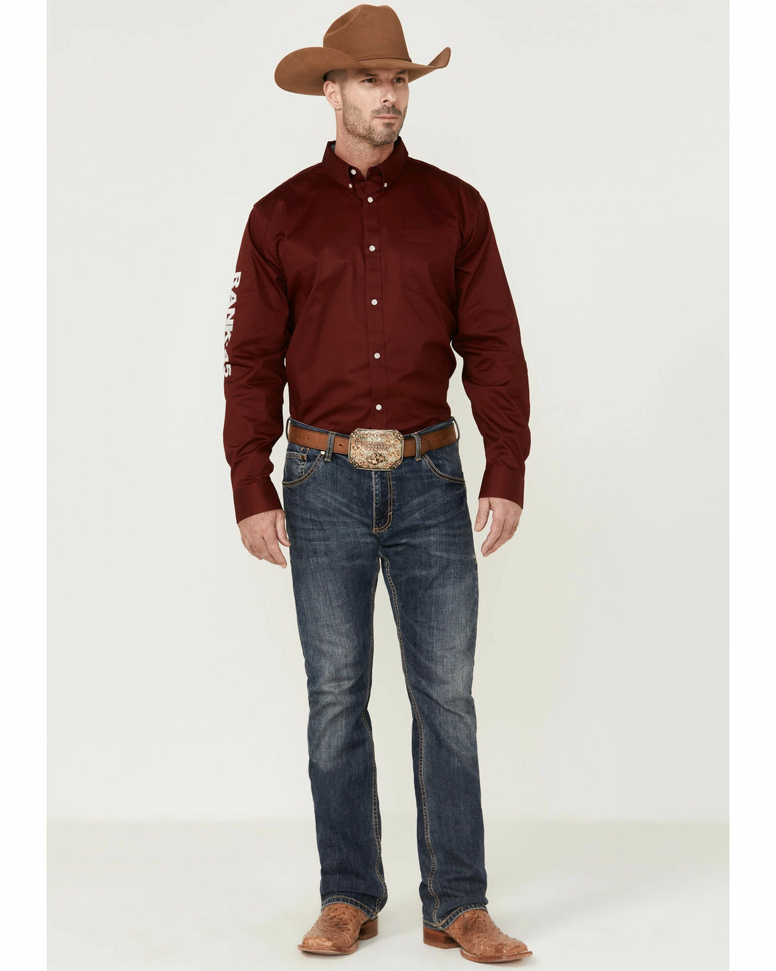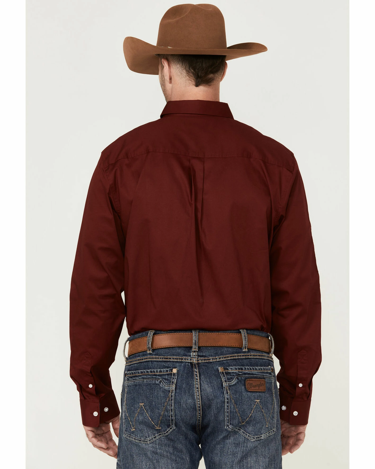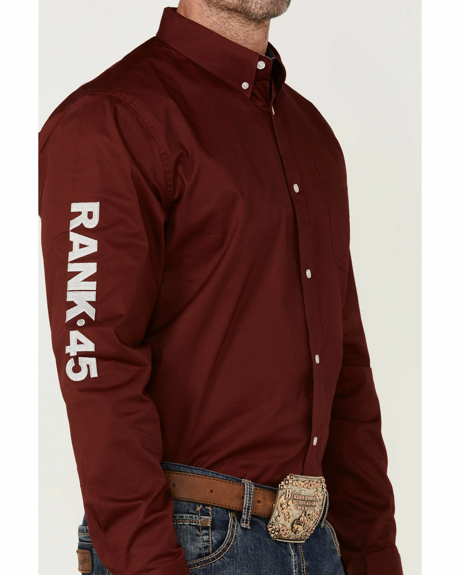 Rank 45 Men’s Performance Twill Logo Long Sleeve Button-Down Western Shirt Burgundy