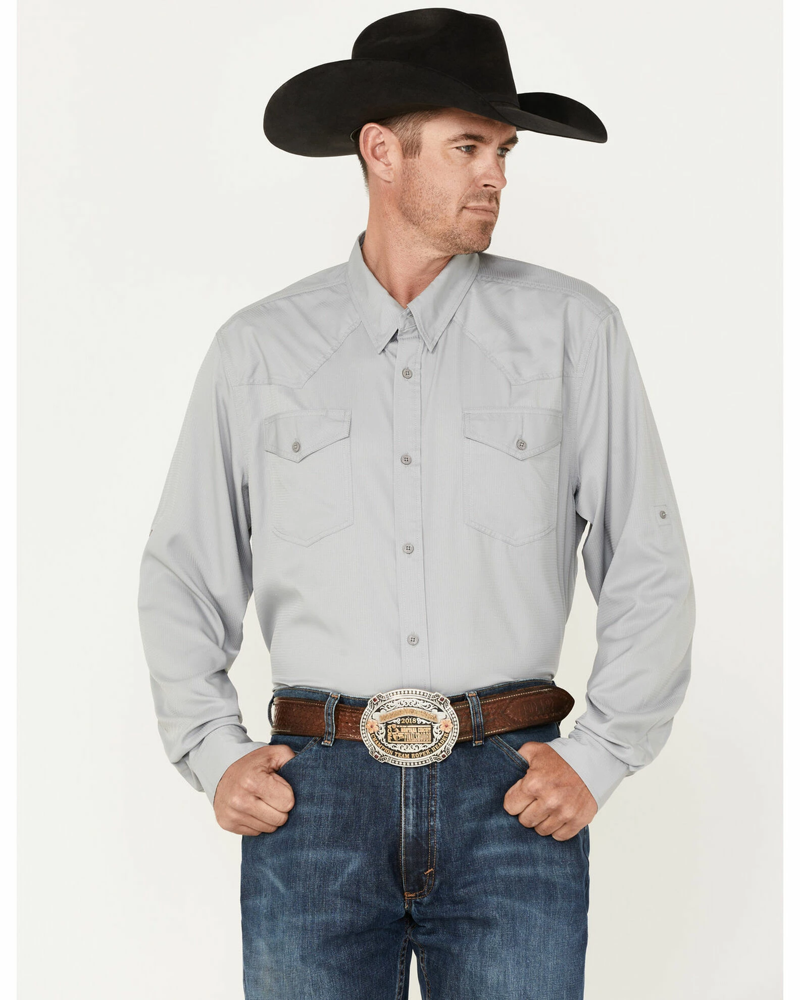 Rank 45 Men’s Roughie Performance Long Sleeve Western Button-Down Shirt Grey