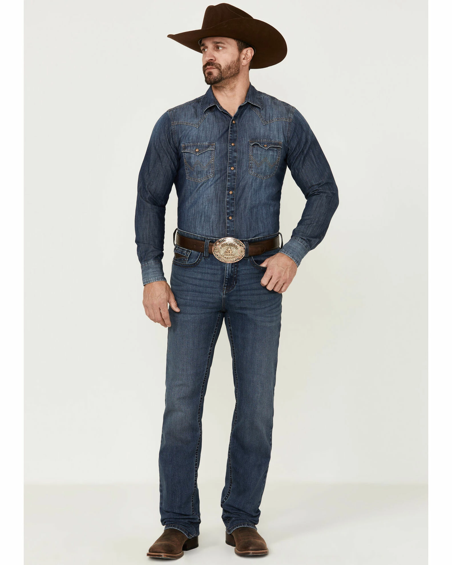 Rank 45 Men’s Shotgun Wash Stackable Slim Straight Stretch Performance Jeans Dark Medium Wash
