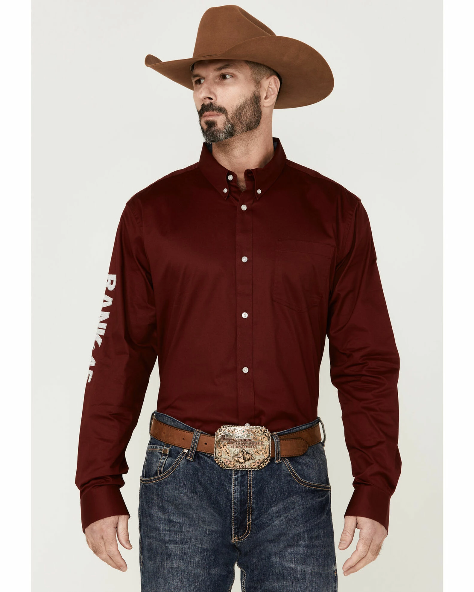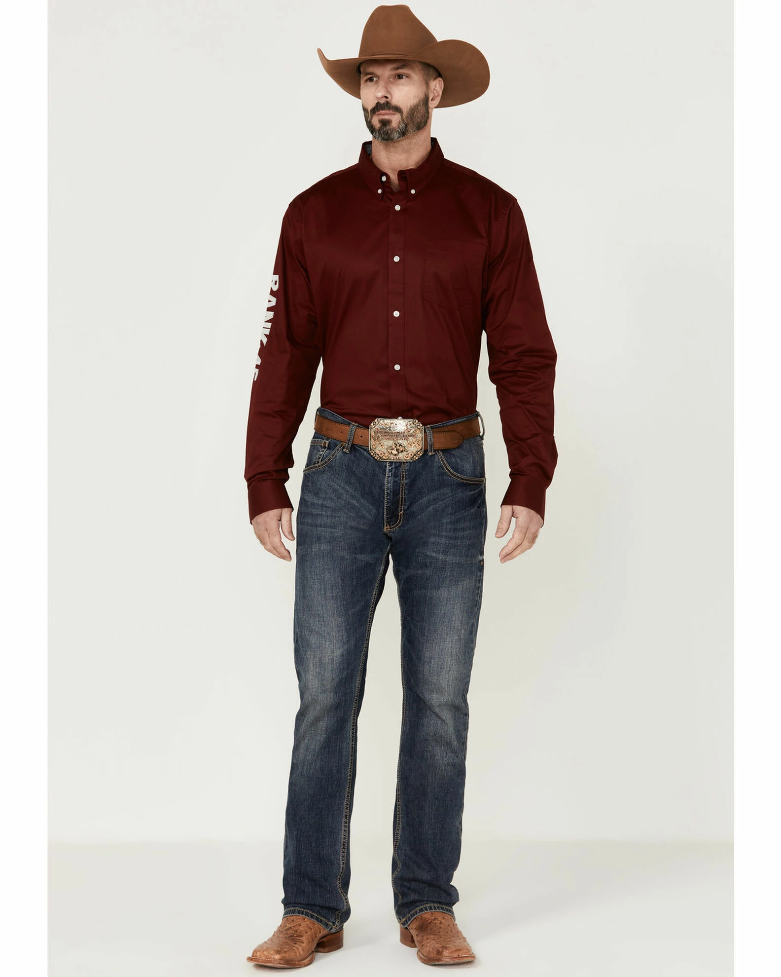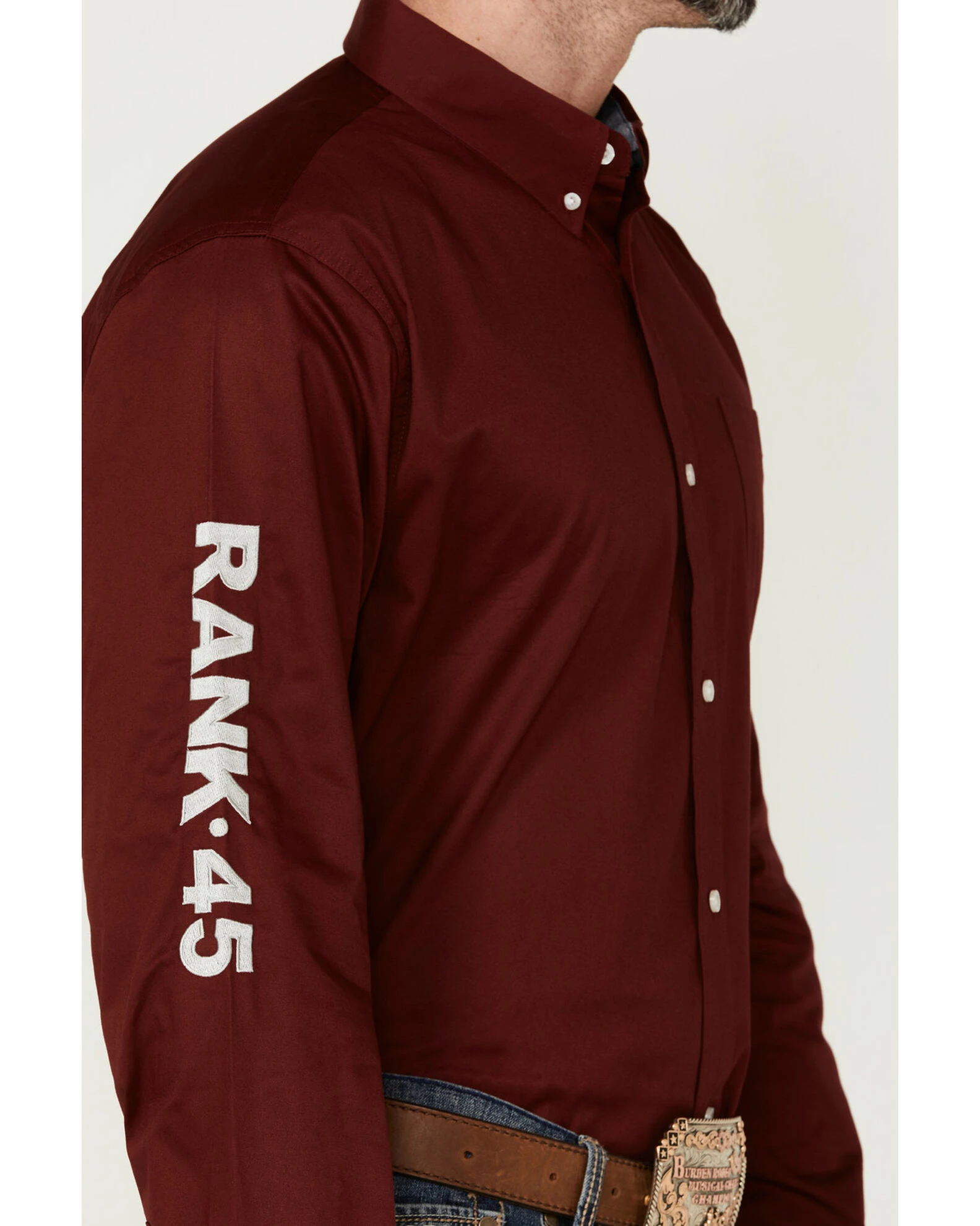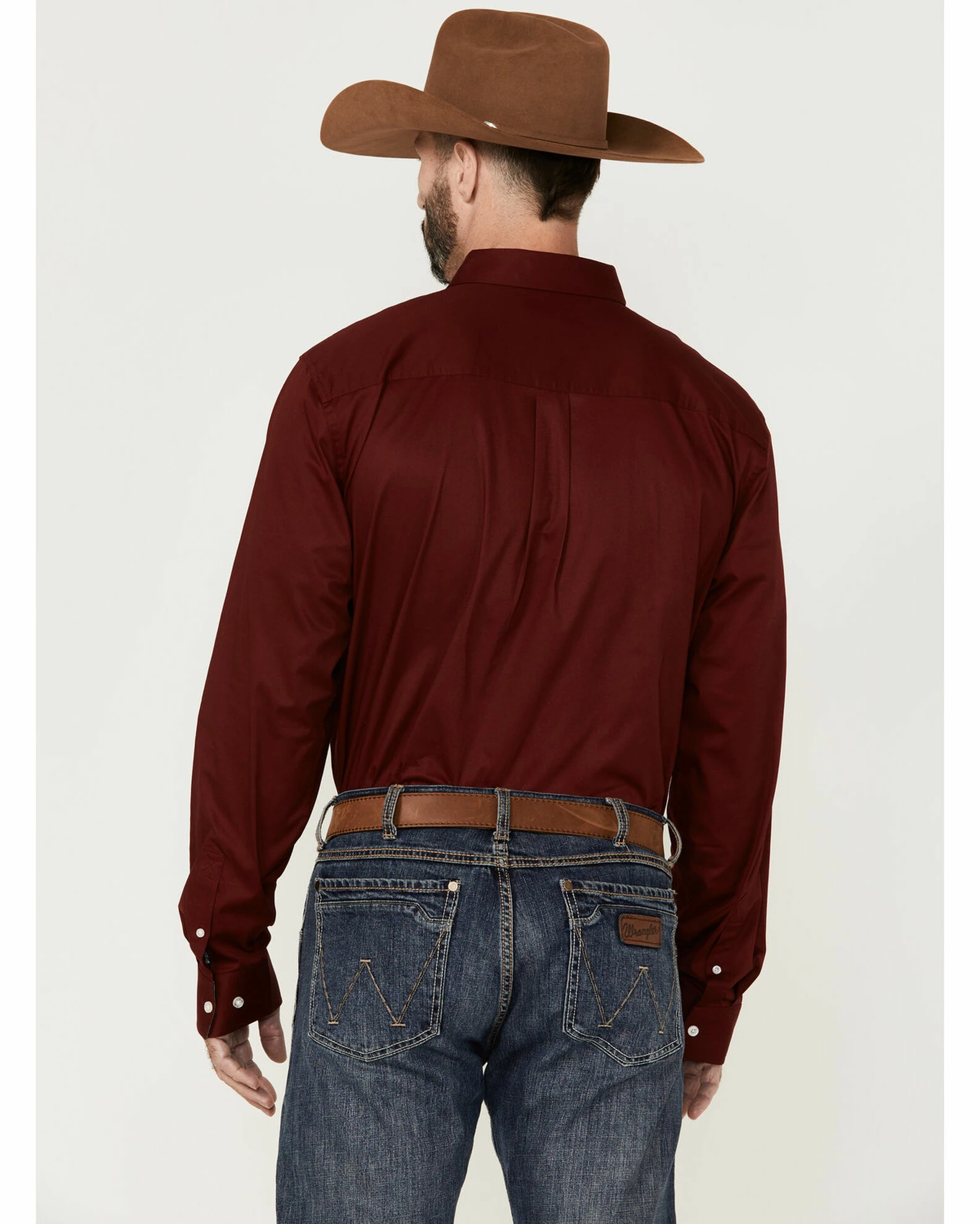 Rank 45 Men’s Solid Maroon Basic Twill Logo Long Sleeve Button-Down Western Shirt – Big & Tall