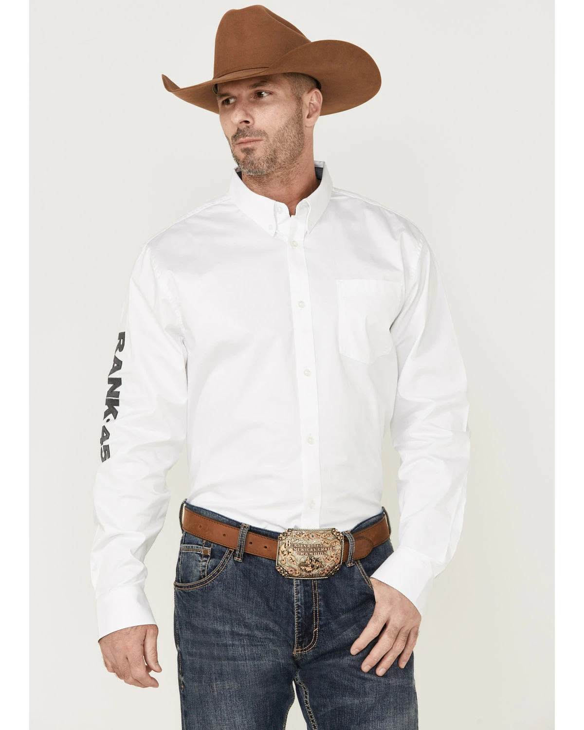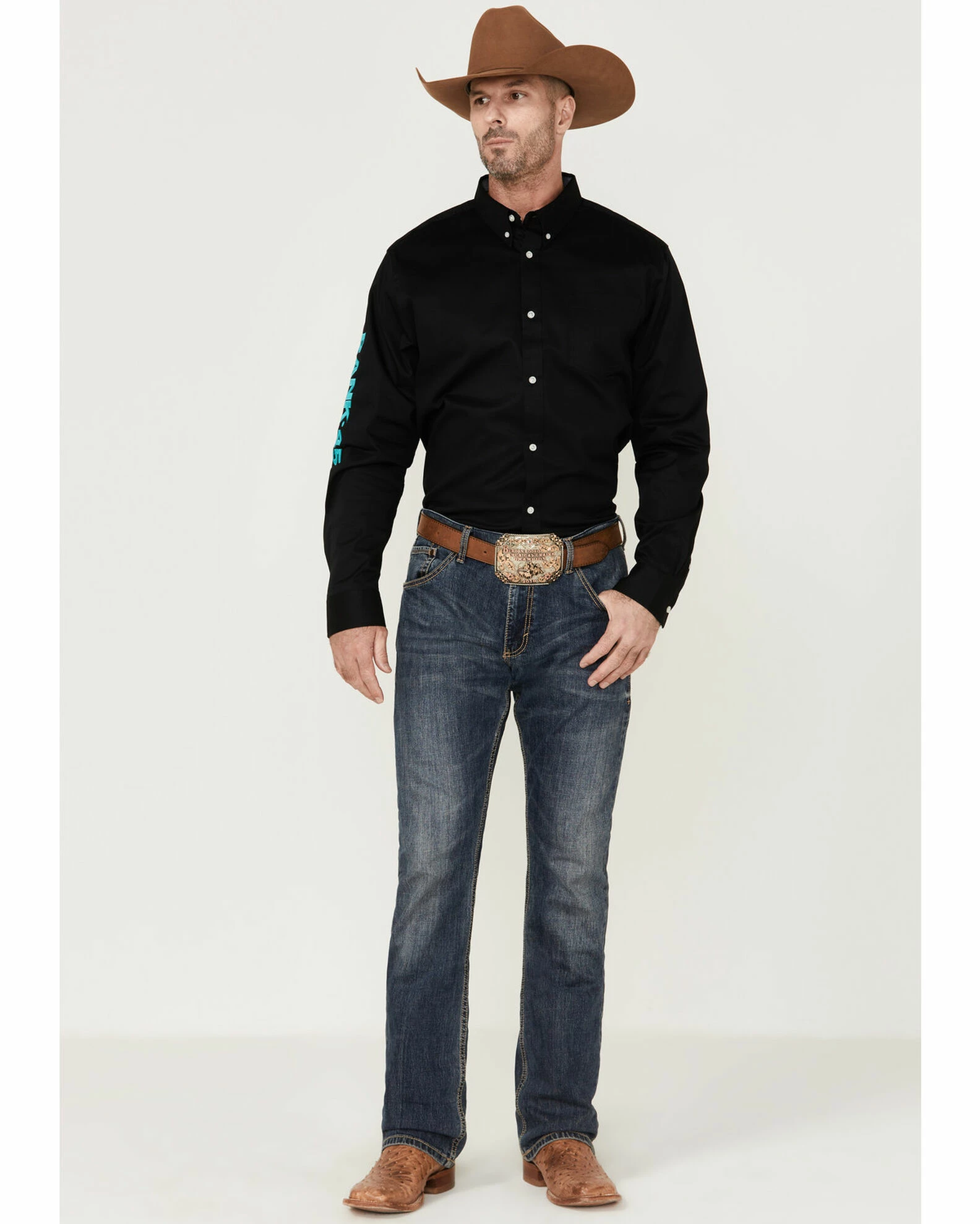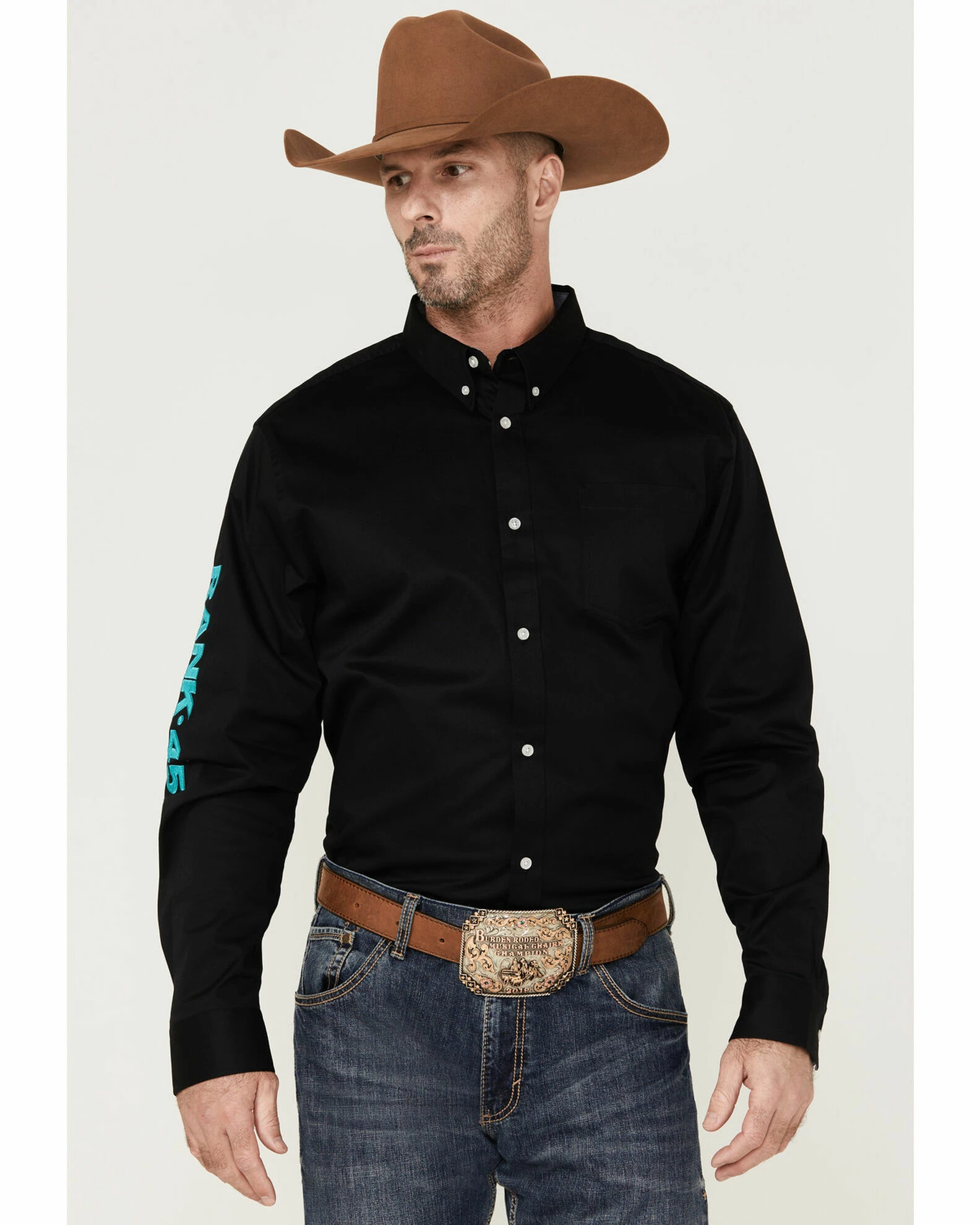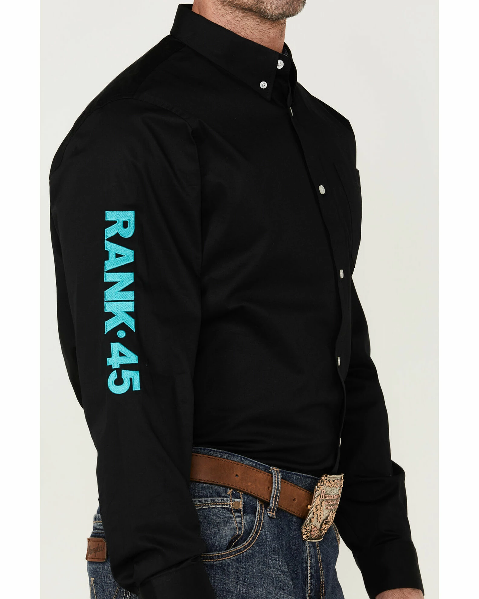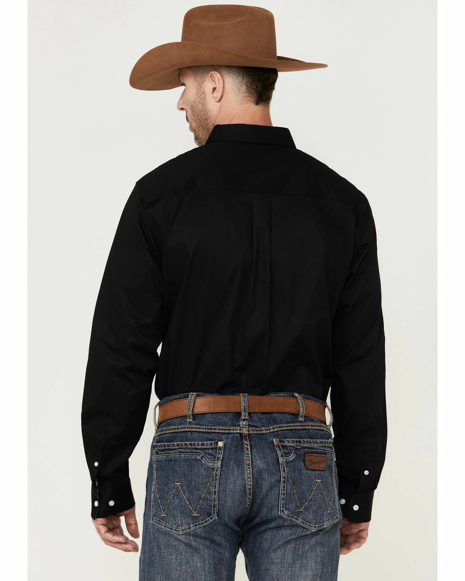 Rank 45 Men’s Solid Performance Twill Logo Long Sleeve Button-Down Western Shirt Black
