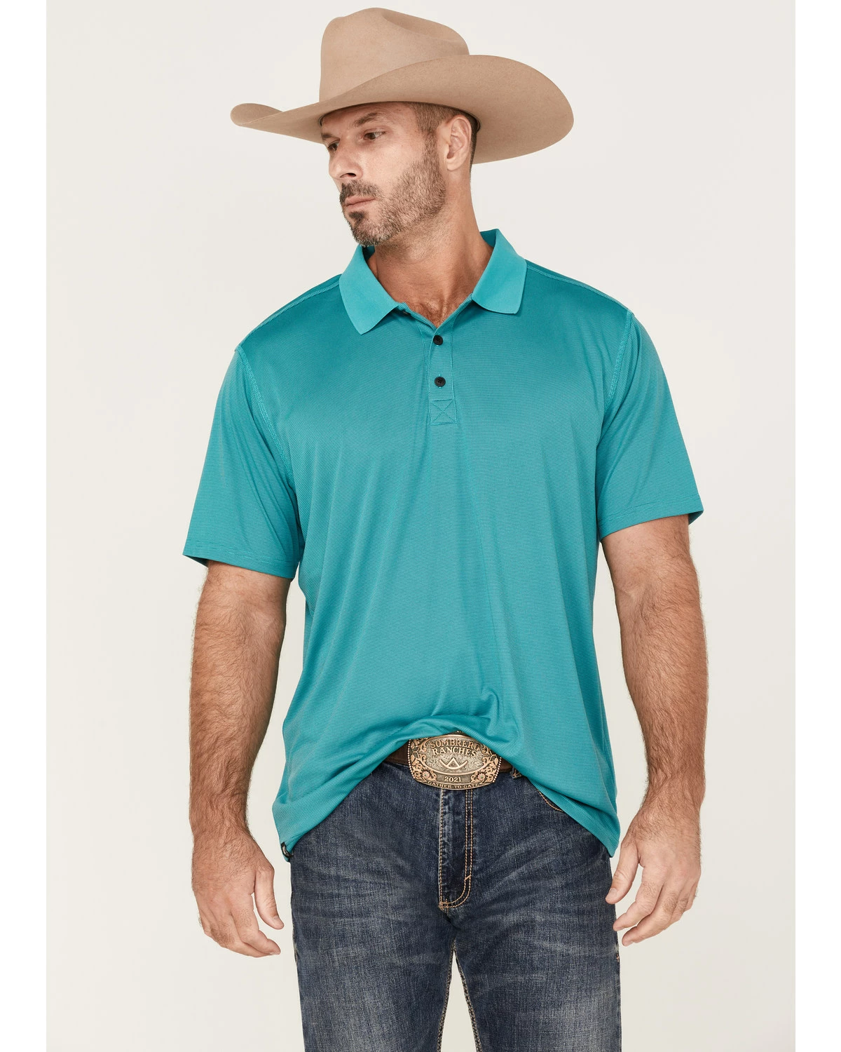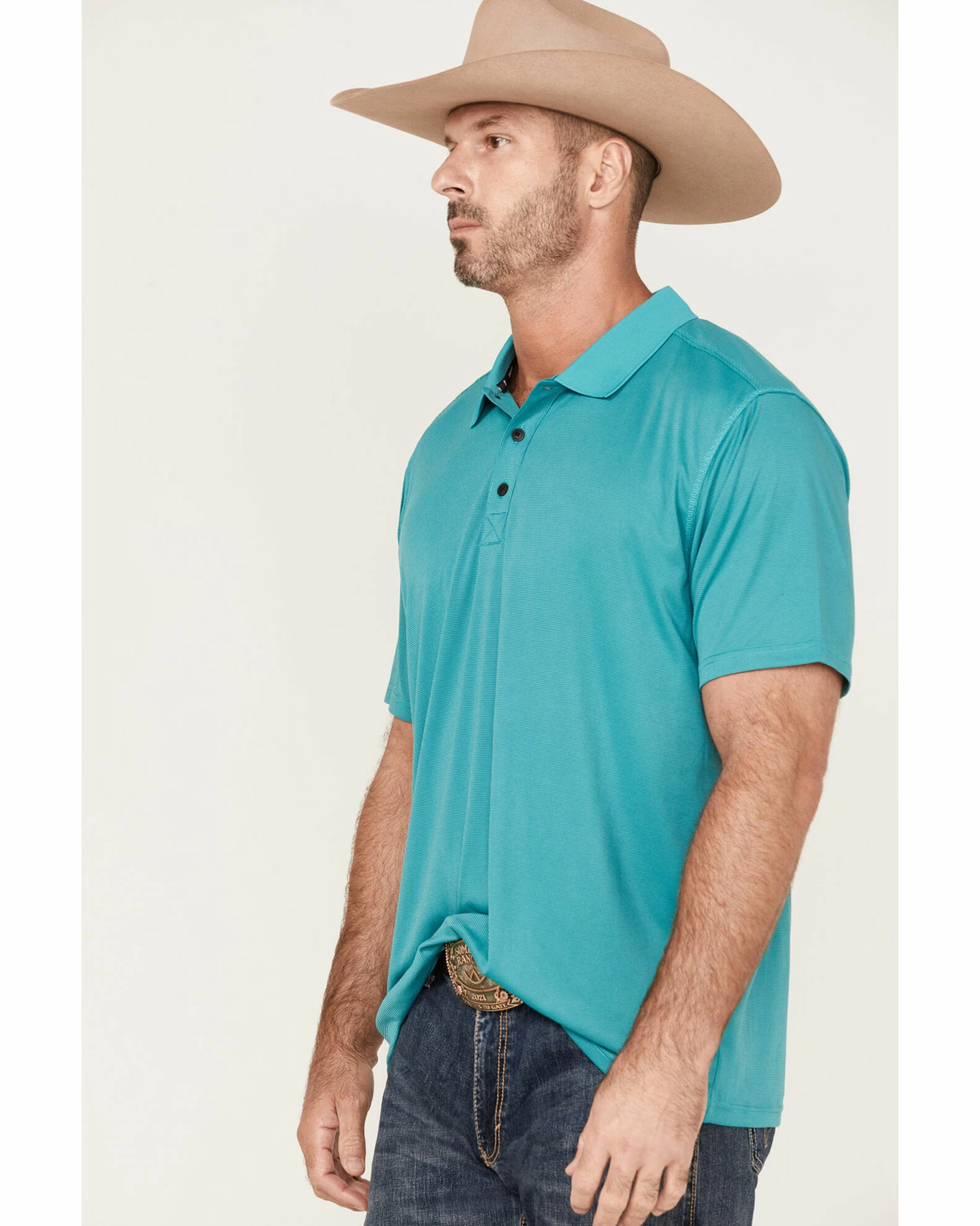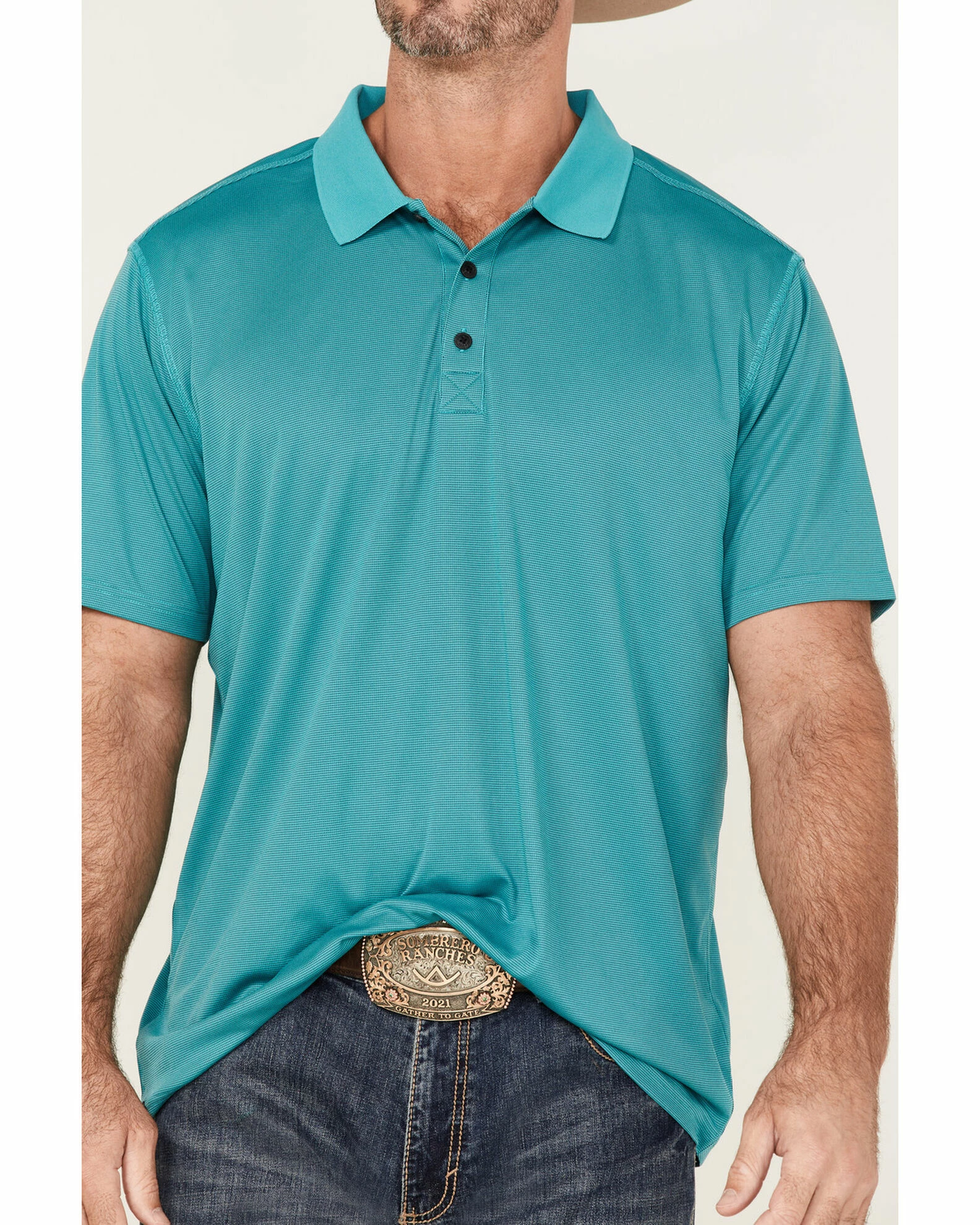 Rank 45 Men’s Spinner Solid Teal Short Sleeve Polo Shirt