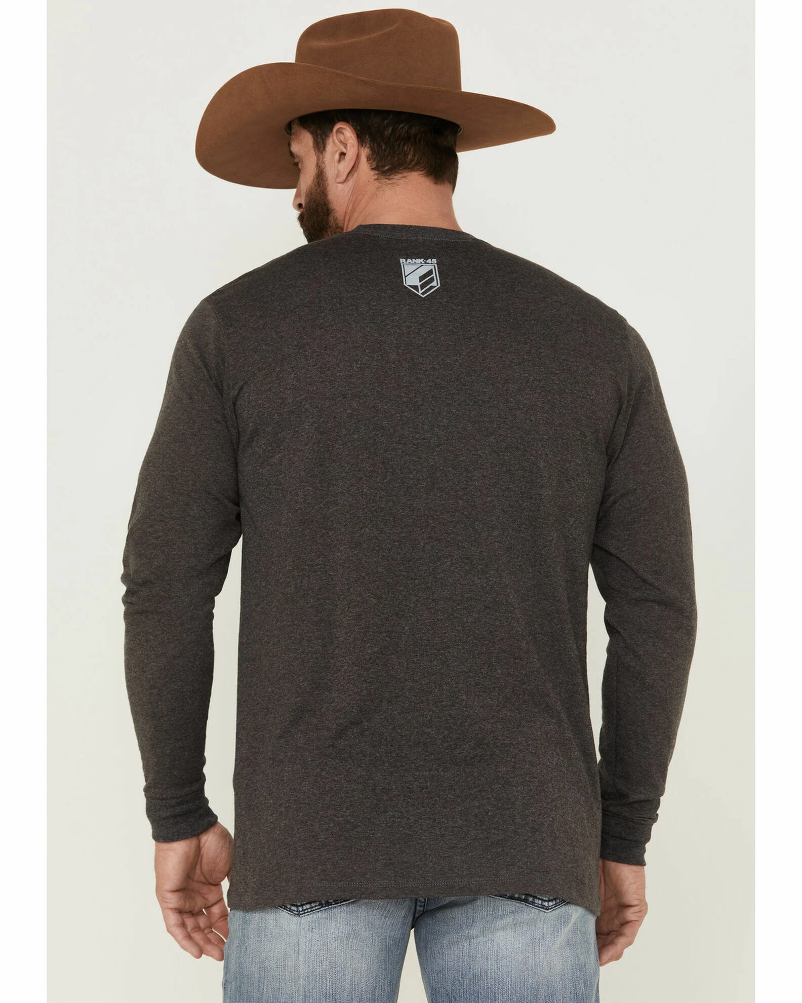 - “Rank 45” with tin sign and bucking horse logo graphic on chest