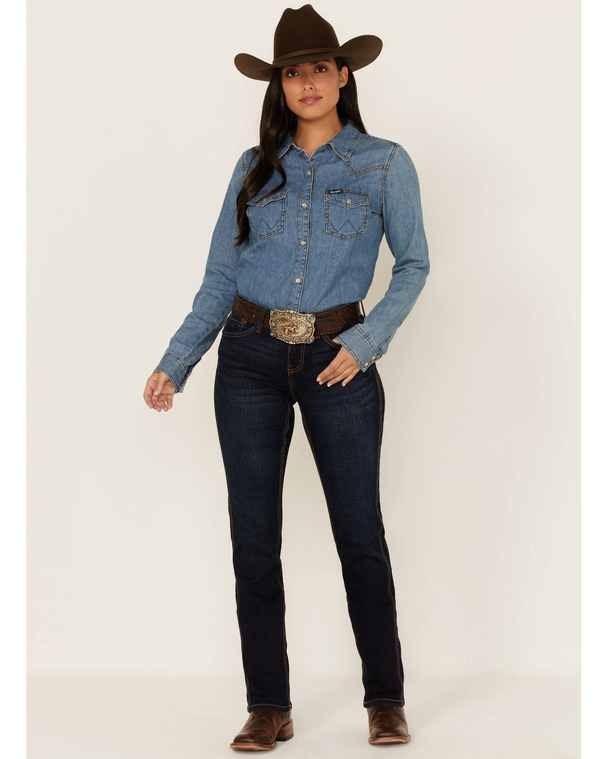 Rank 45 Women’s Dark Wash Mid Straight Riding Jeans