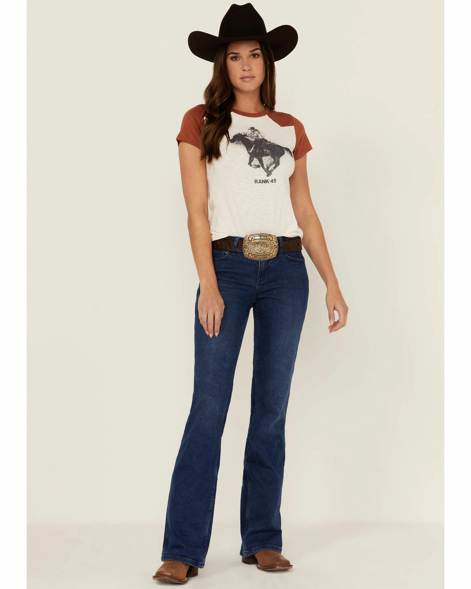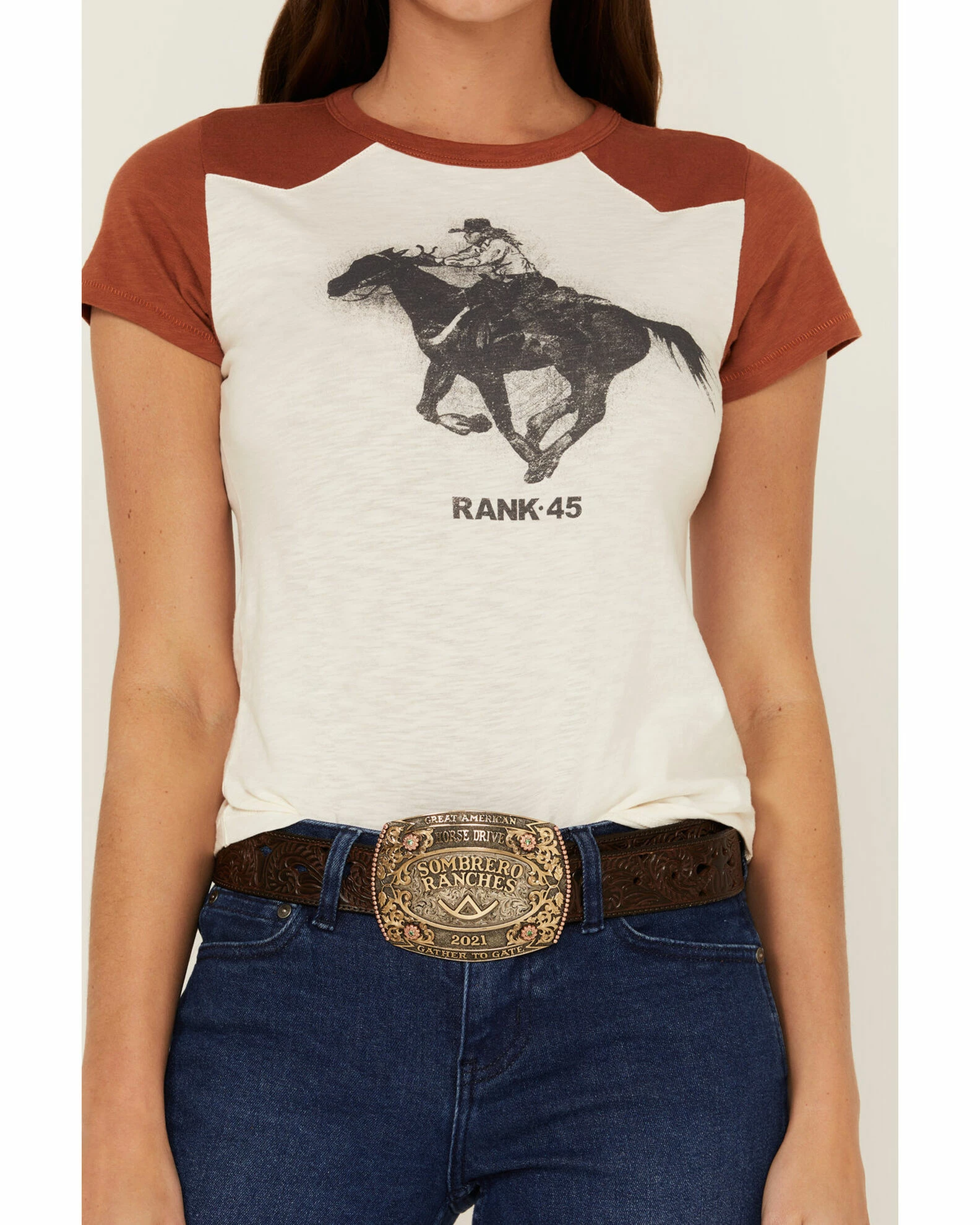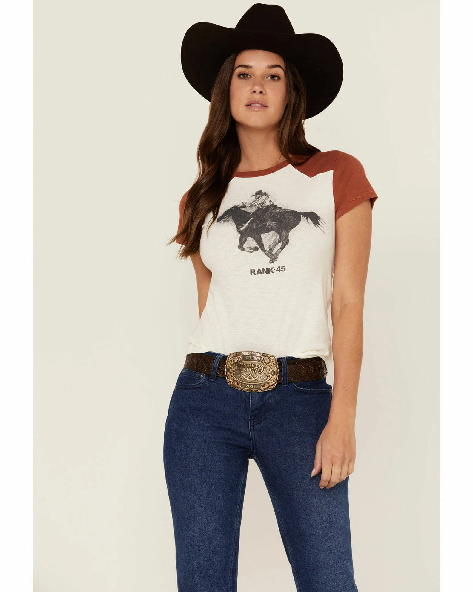 Rank 45 Women’s Horse Rider Graphic Raglan Western Yoke Tee Ivory