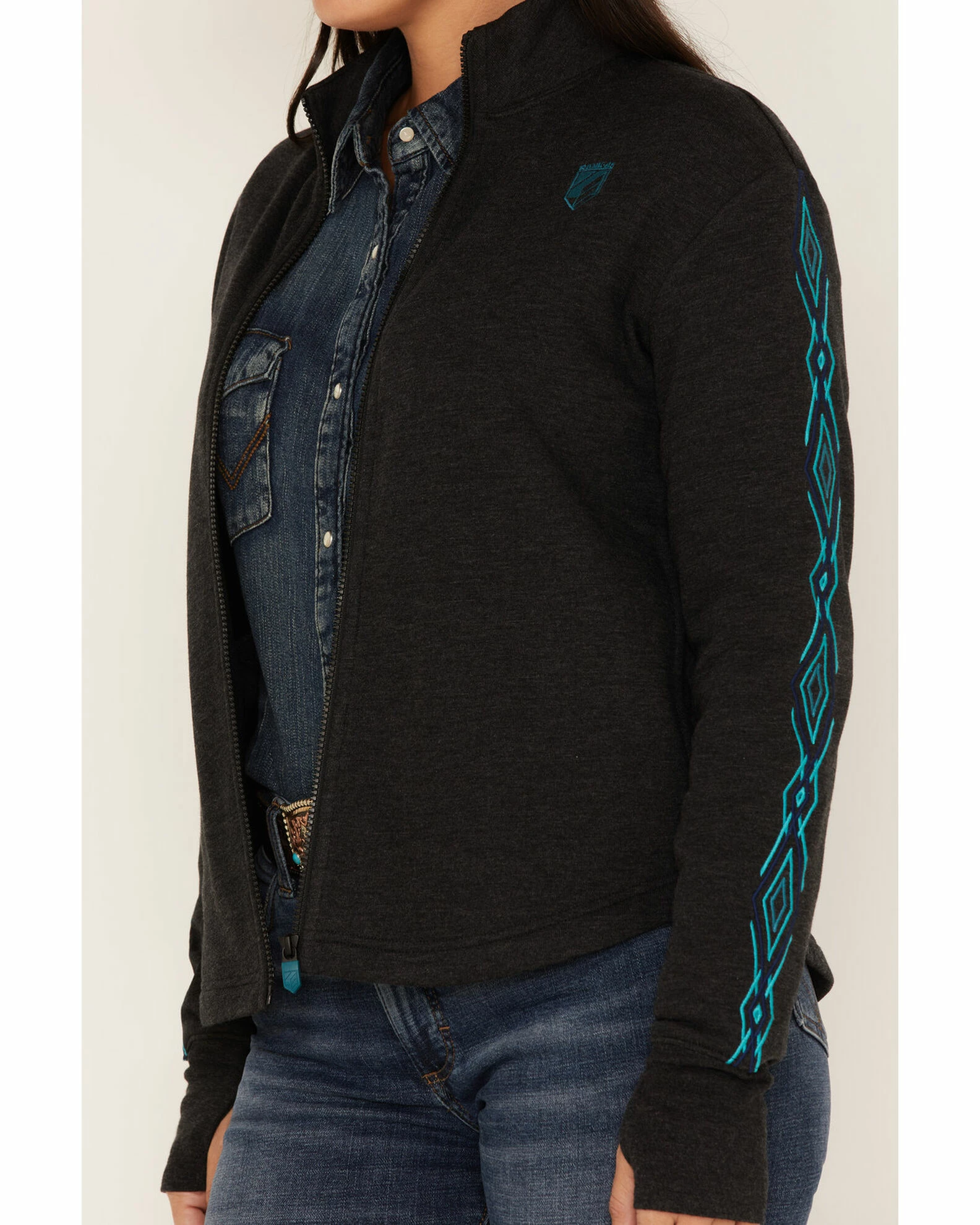 - Solid pattern with design on sleeves