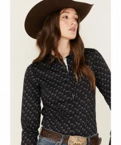 Rank 45 Women’s Outdoor Vented York Riding Long Sleeve Snap Shirt Black