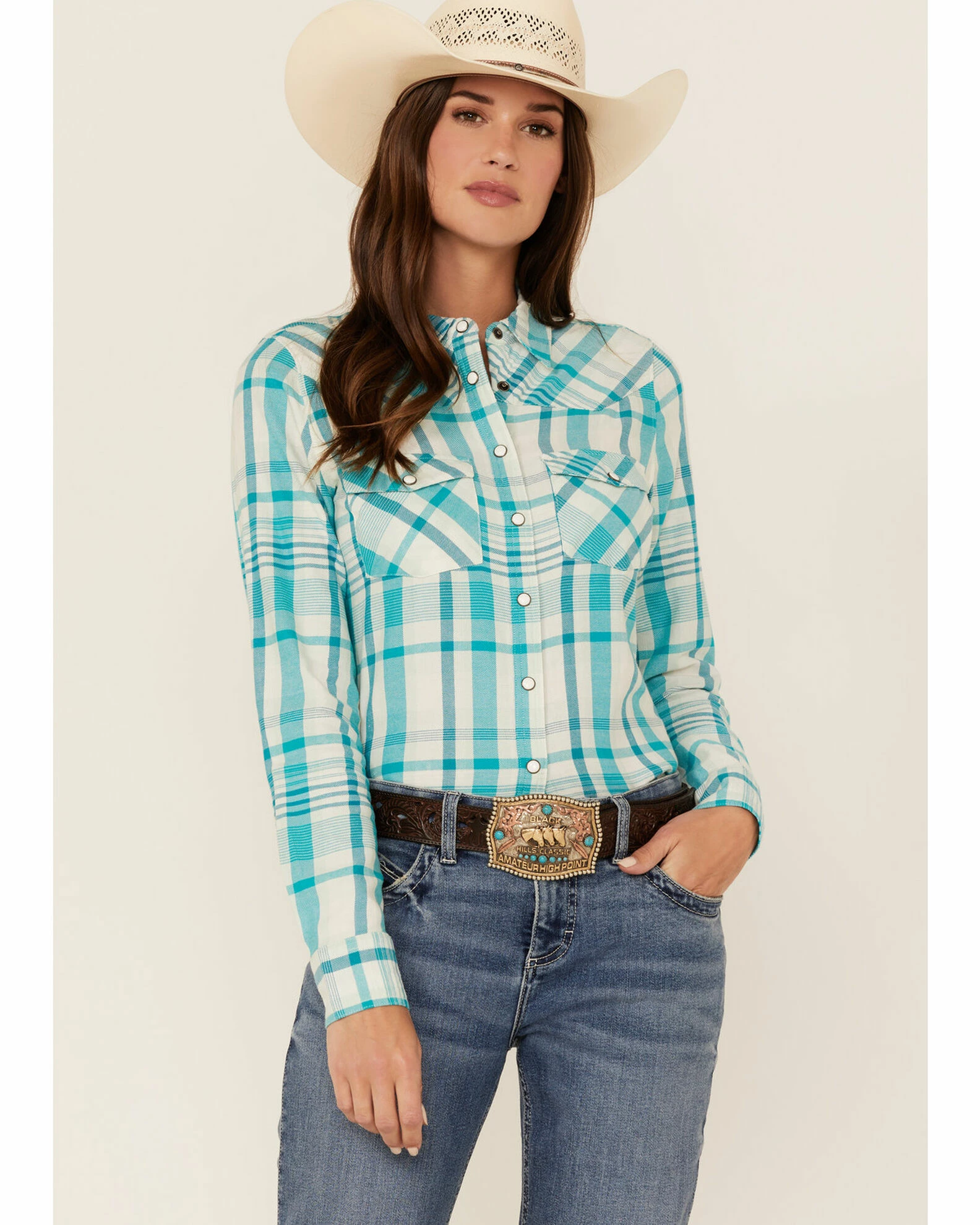 Rank 45 Women’s Plaid Long Sleeve Snap Riding Western Shirt Turquoise