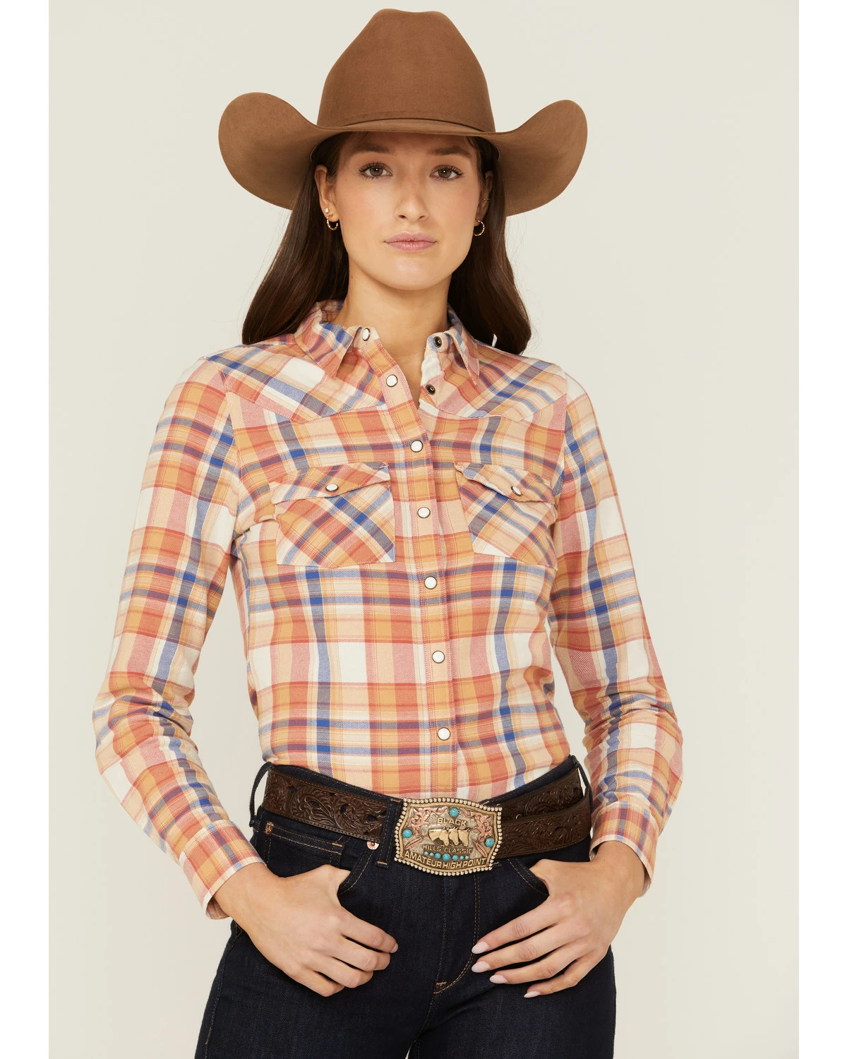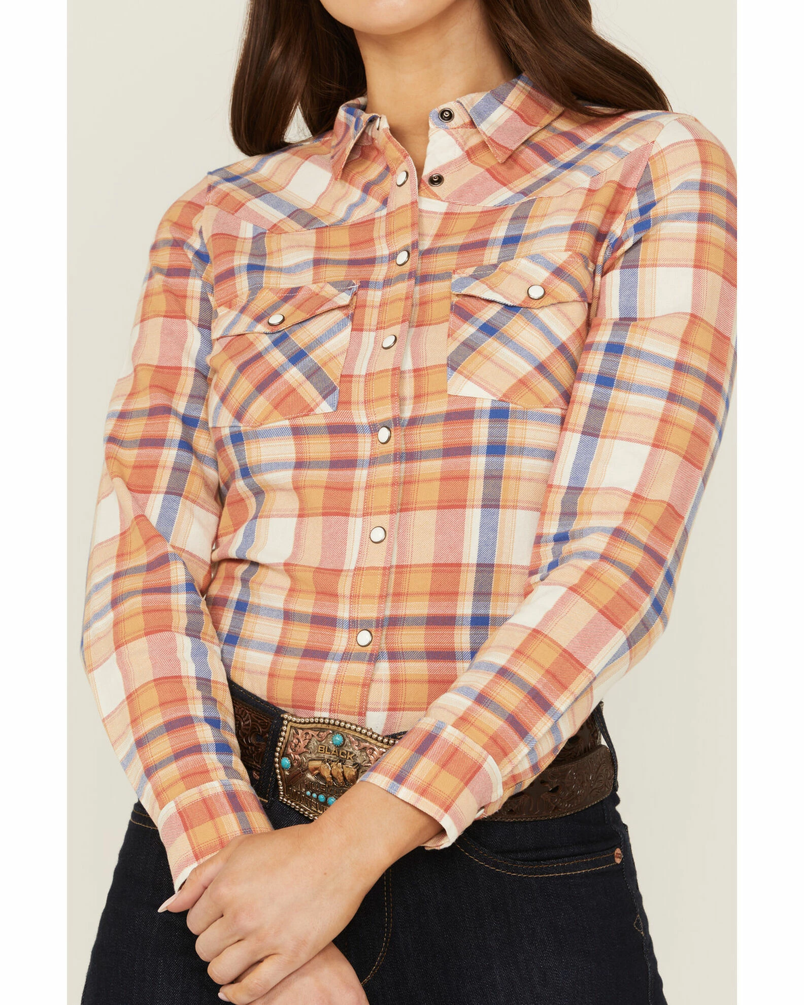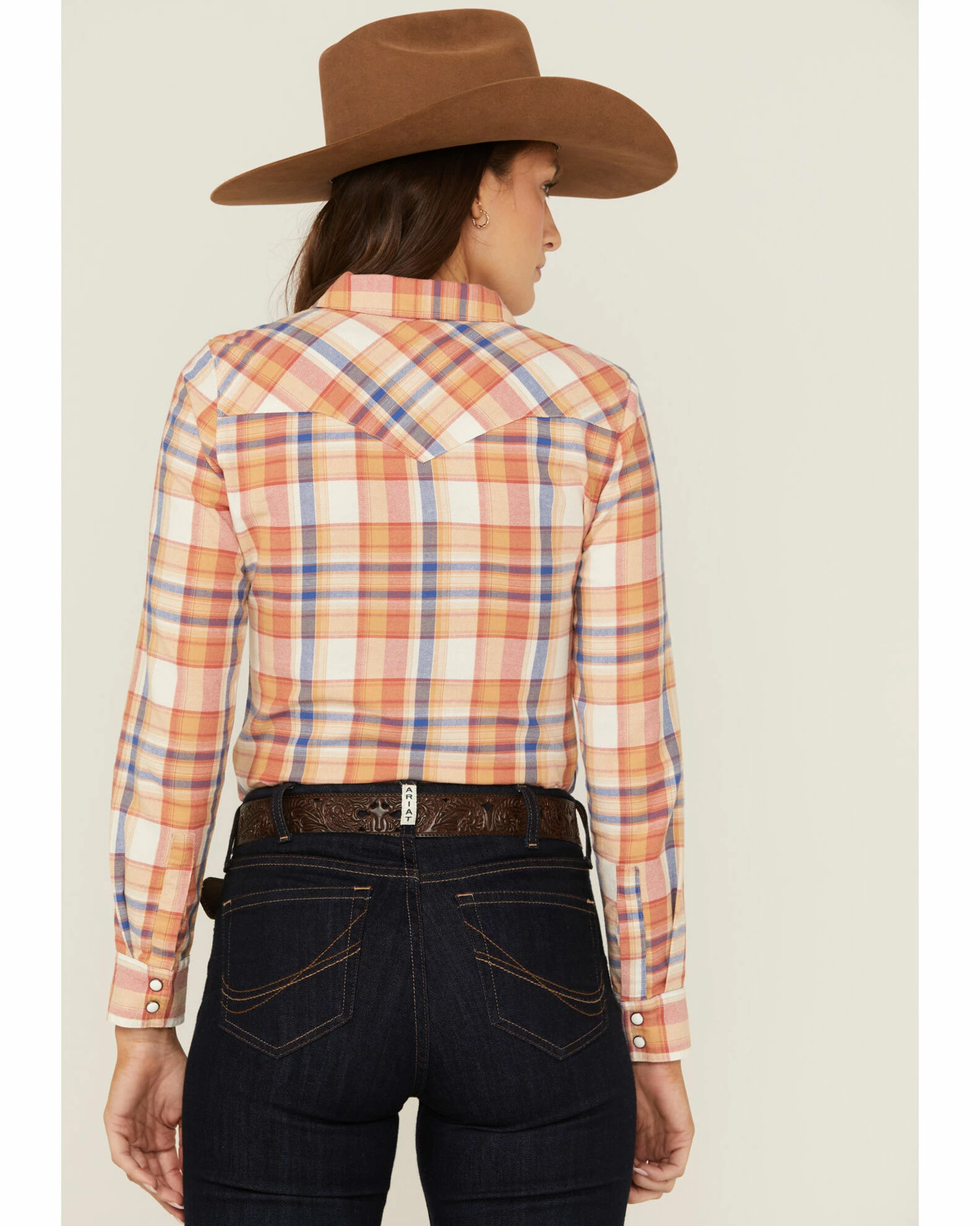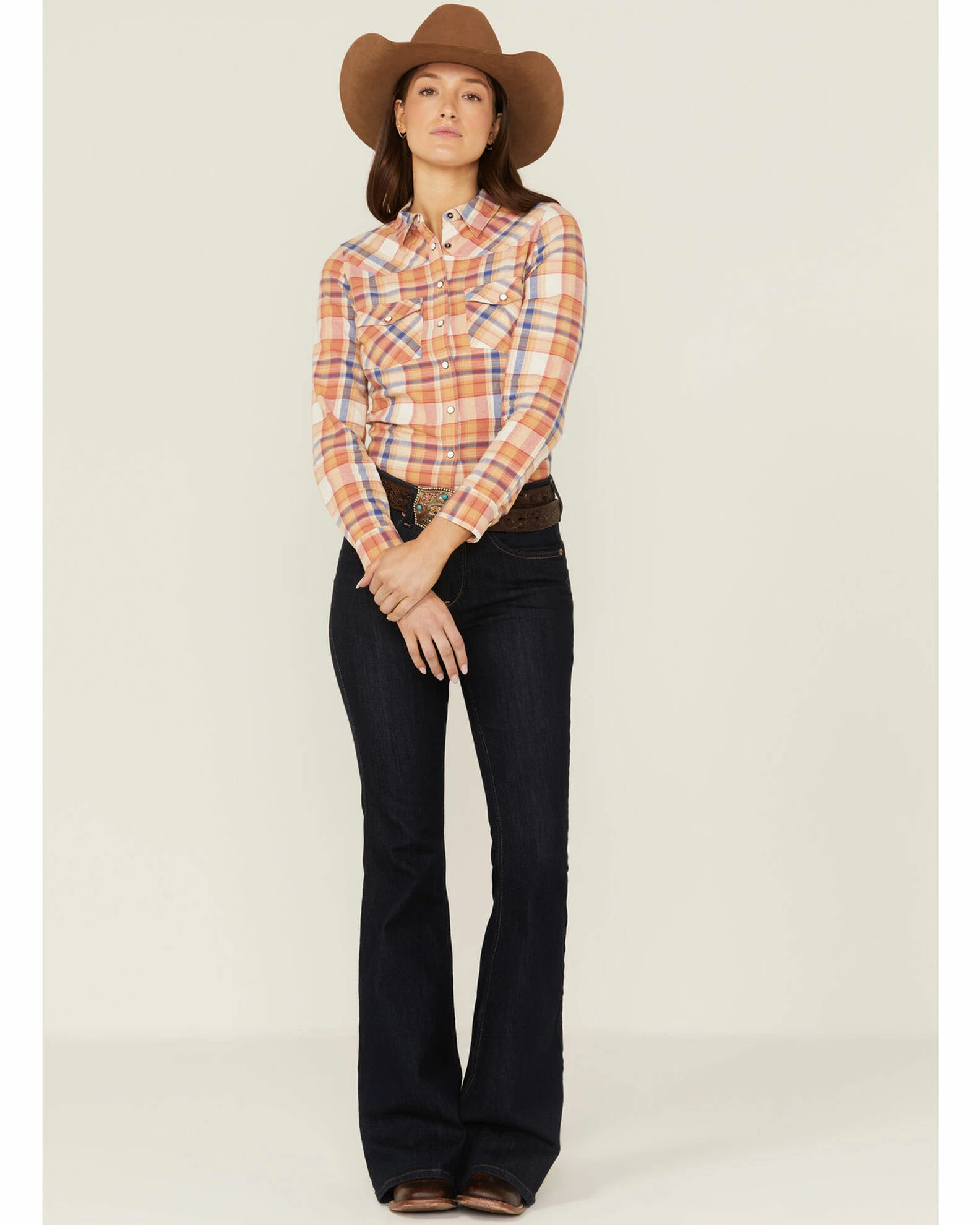 Rank 45 Women’s Plaid Print Long Sleeve Western Snap Shirt Ivory
