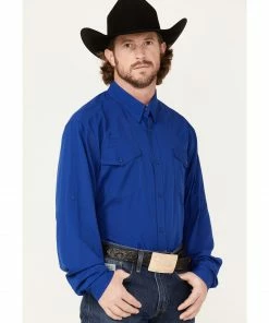 Rank 45 Men’s Solid Maroon Basic Twill Logo Long Sleeve Button-Down Western Shirt – Big & Tall