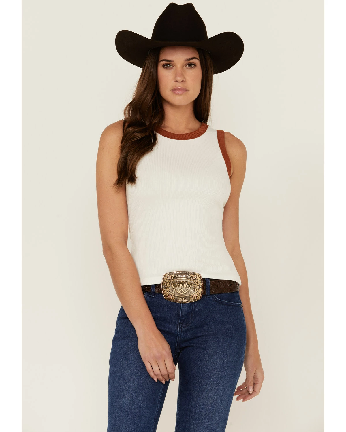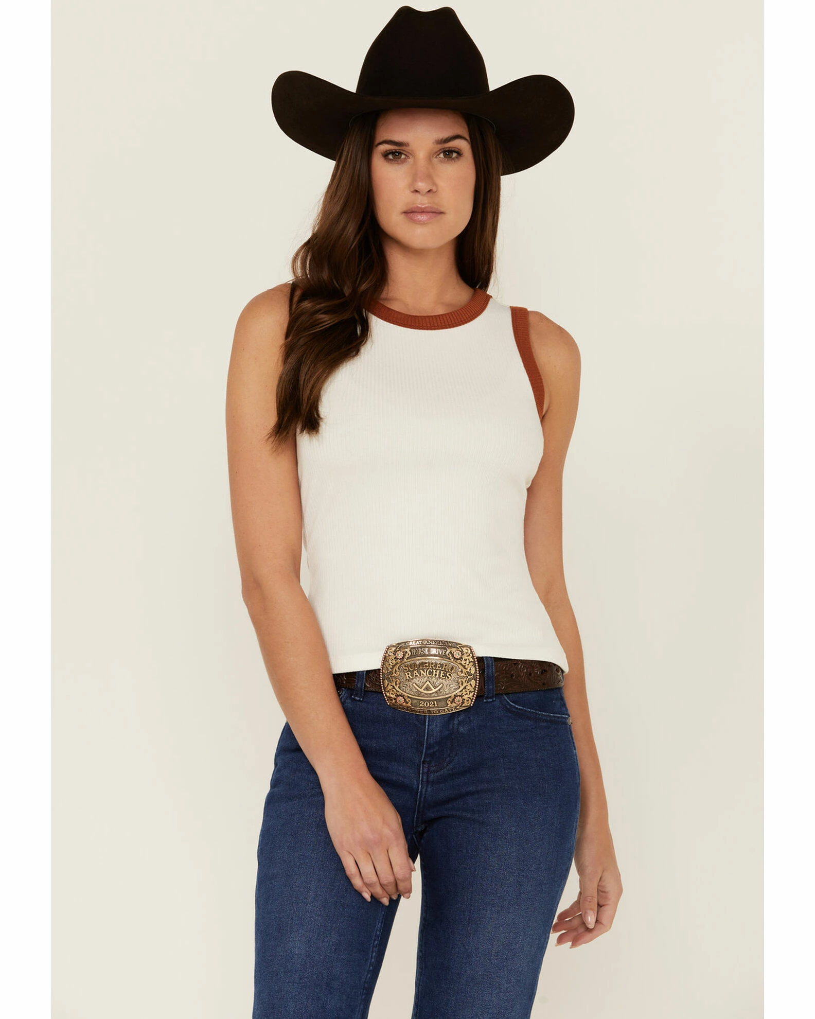 Rank 45 Women’s Ribbed White Contrast High Neck Tank