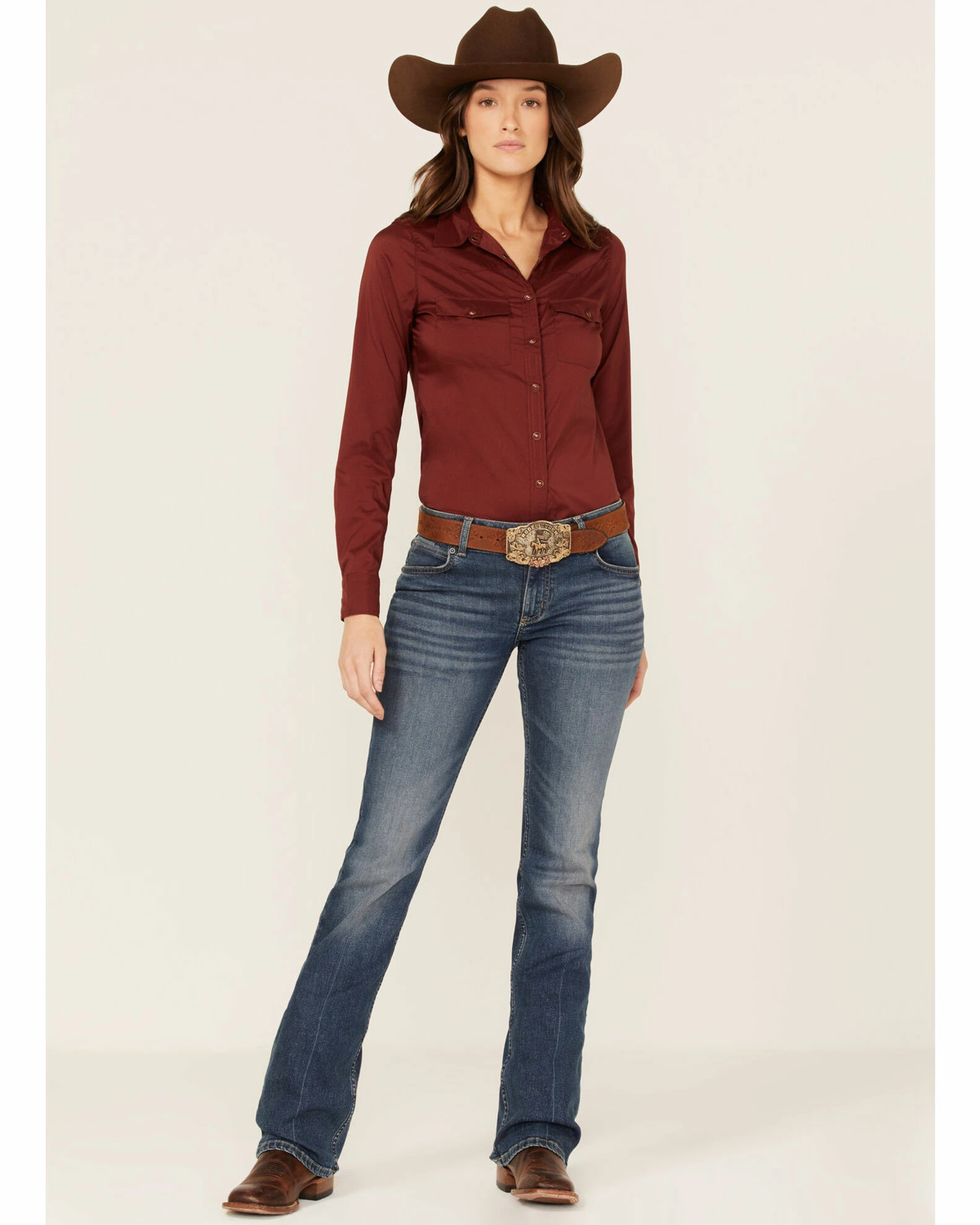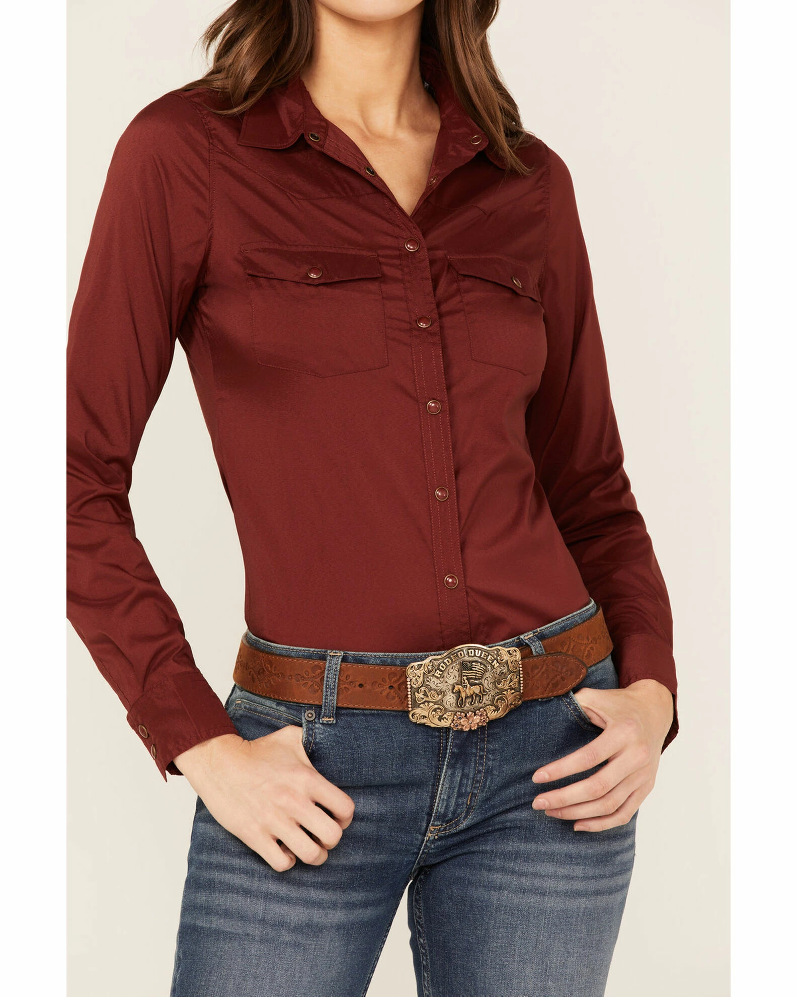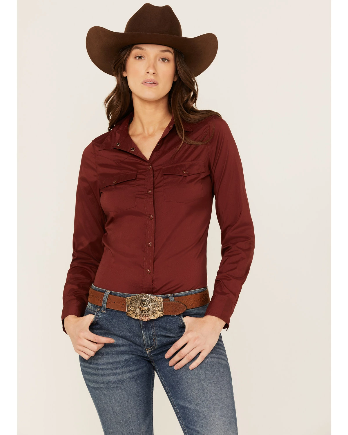 Rank 45 Women’s Riding Long Sleeve Western Snap Shirt Fired Brick