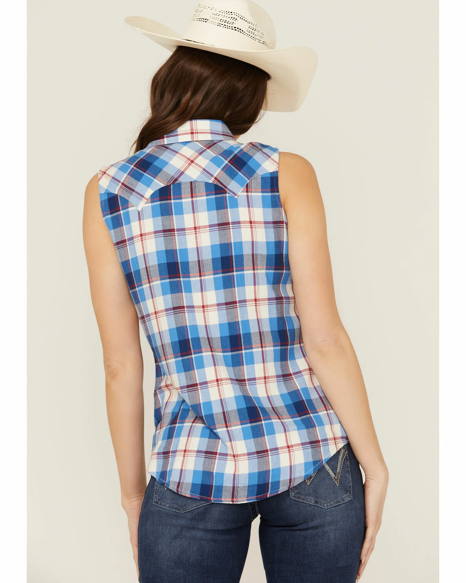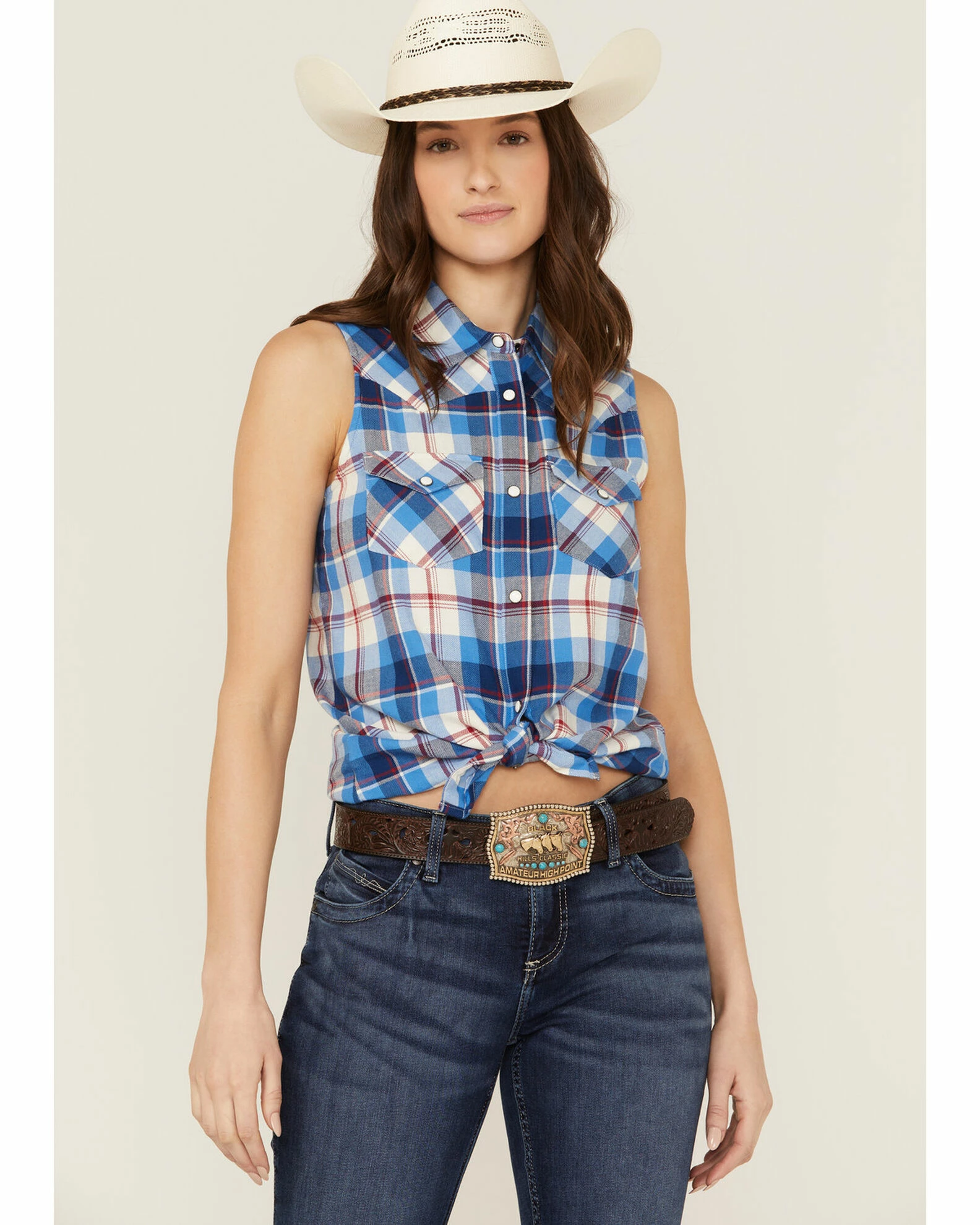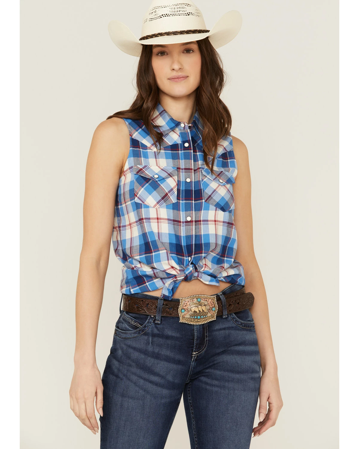 Rank 45 Women’s Sleeveless Button Down Plaid Western Shirt Blue