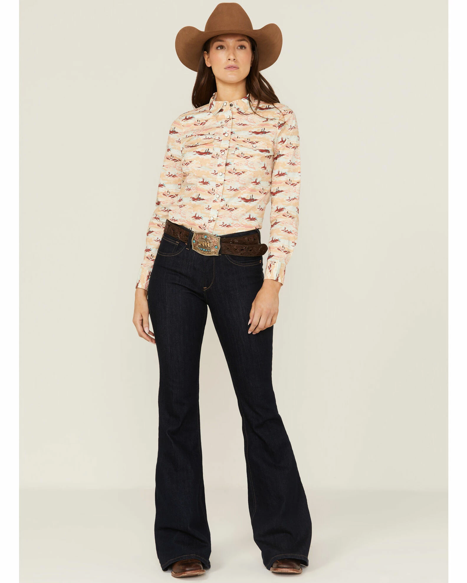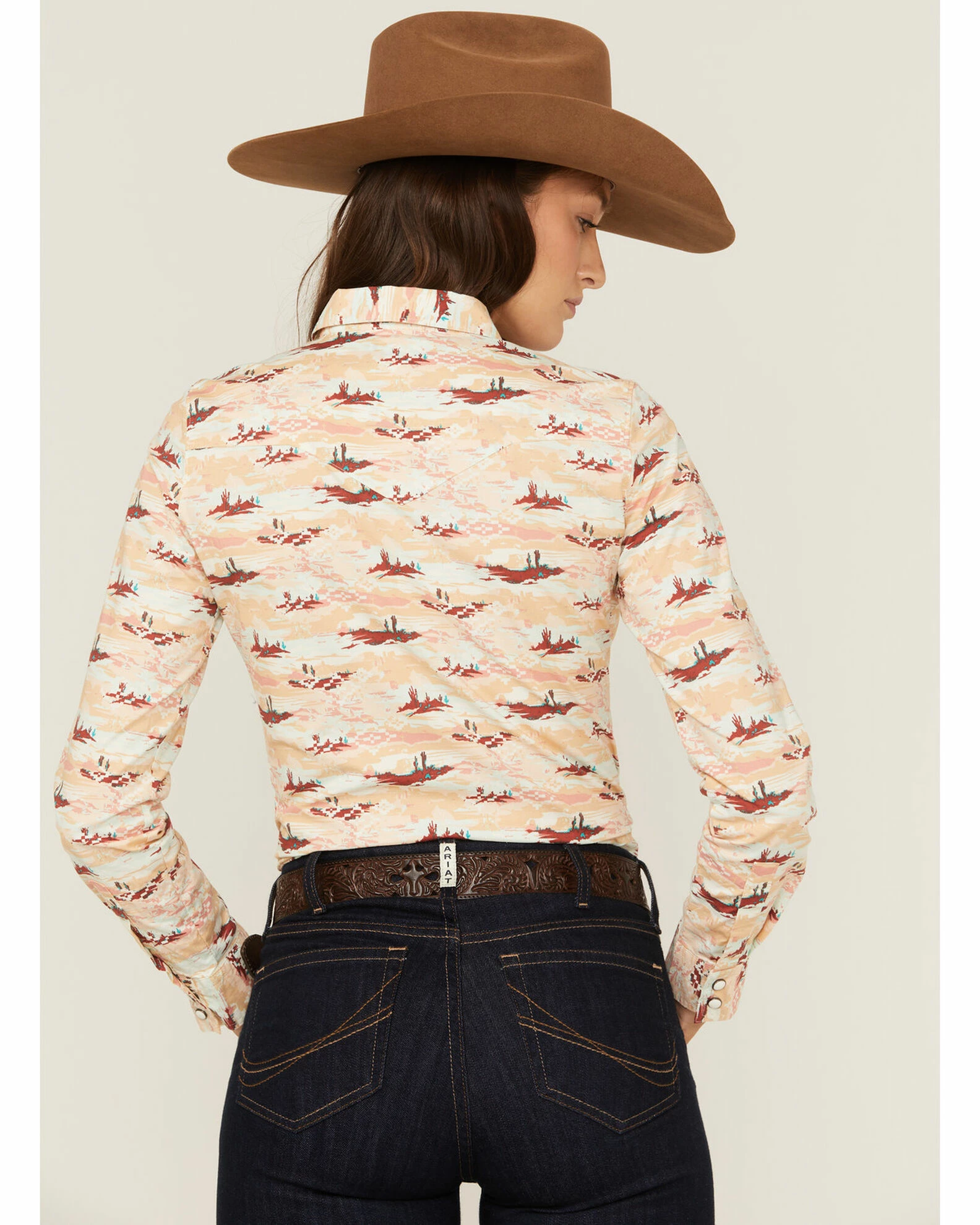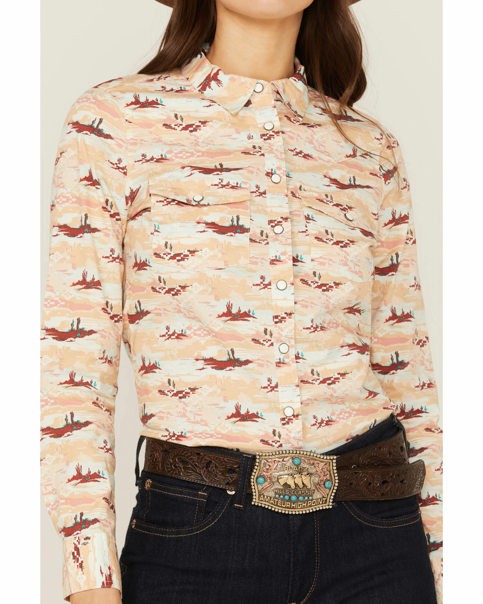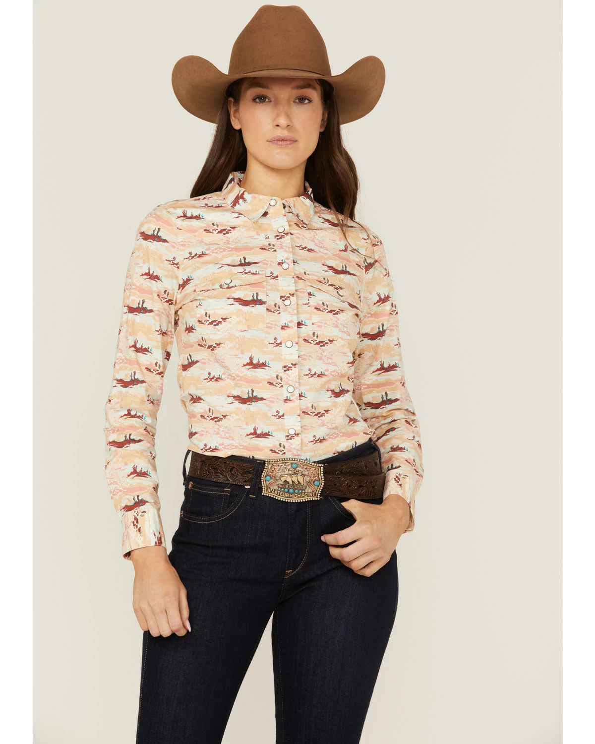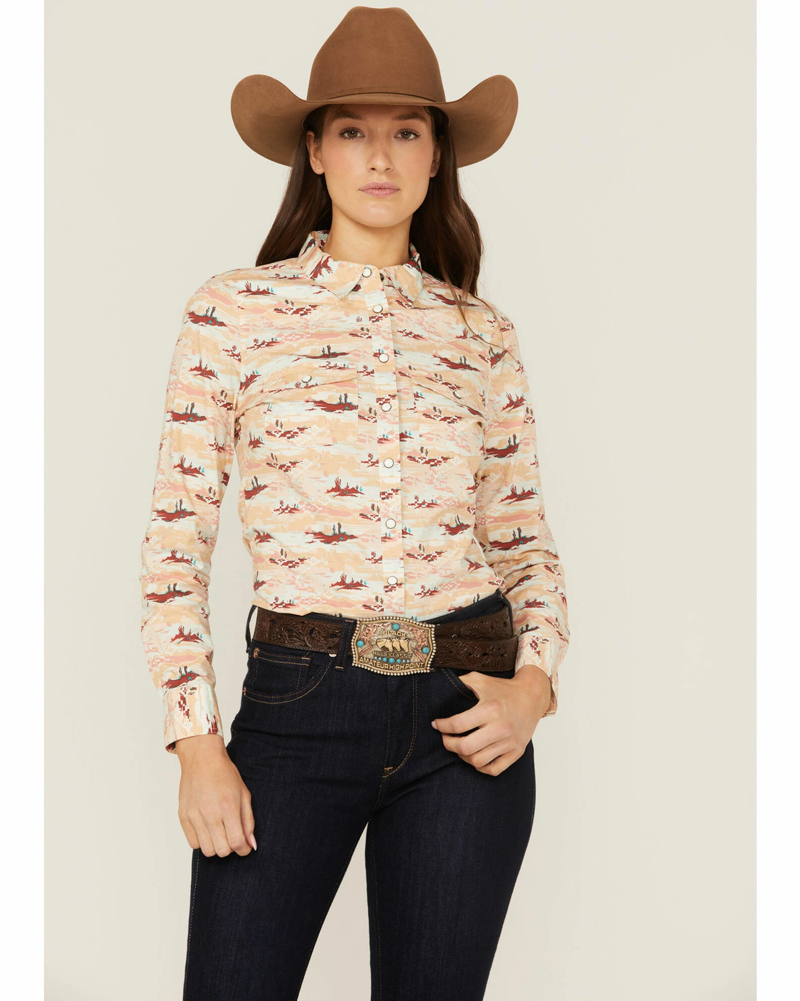 Rank 45 Women’s Southwestern Desert Scene Print Long Sleeve Western Snap Shirt Ivory