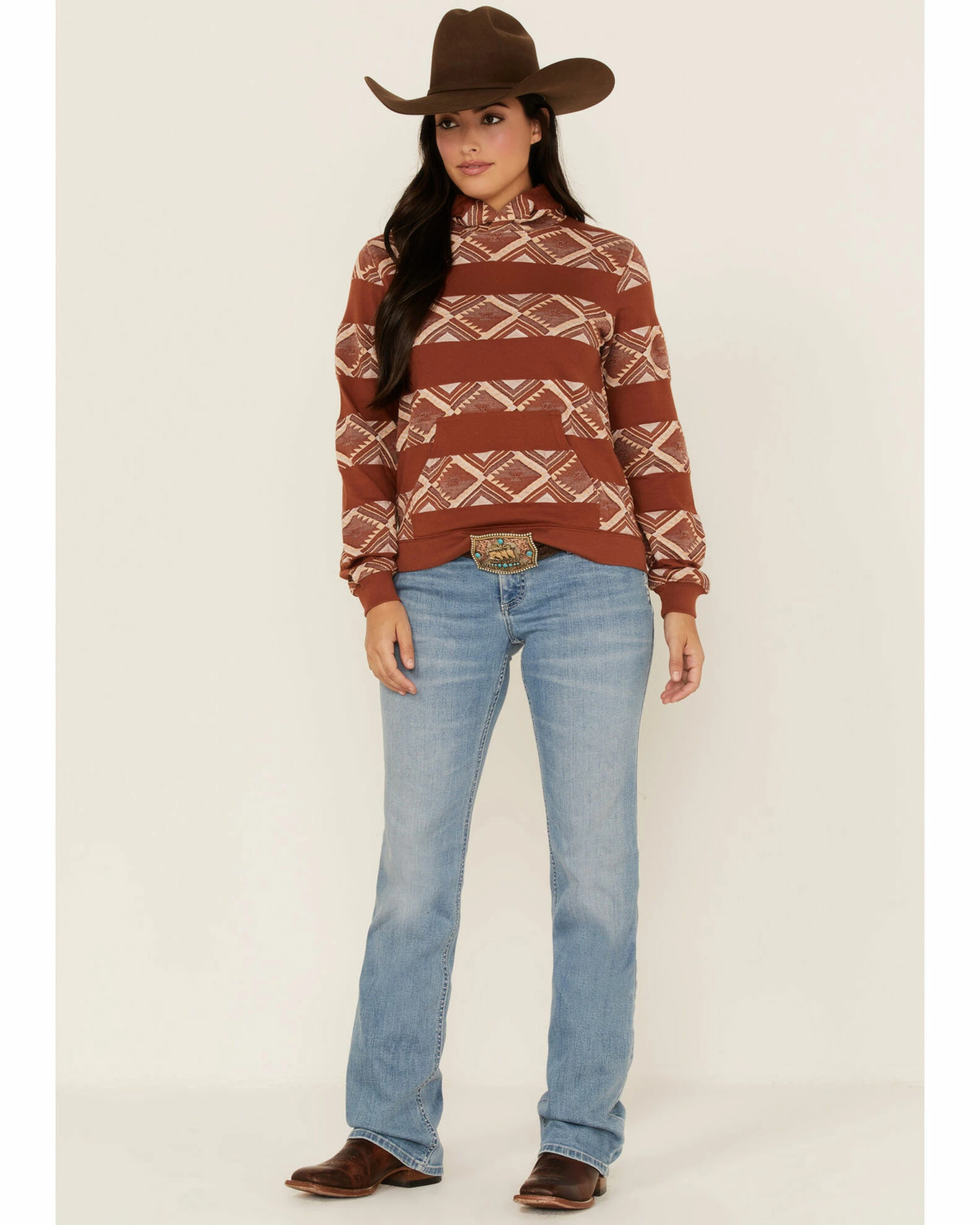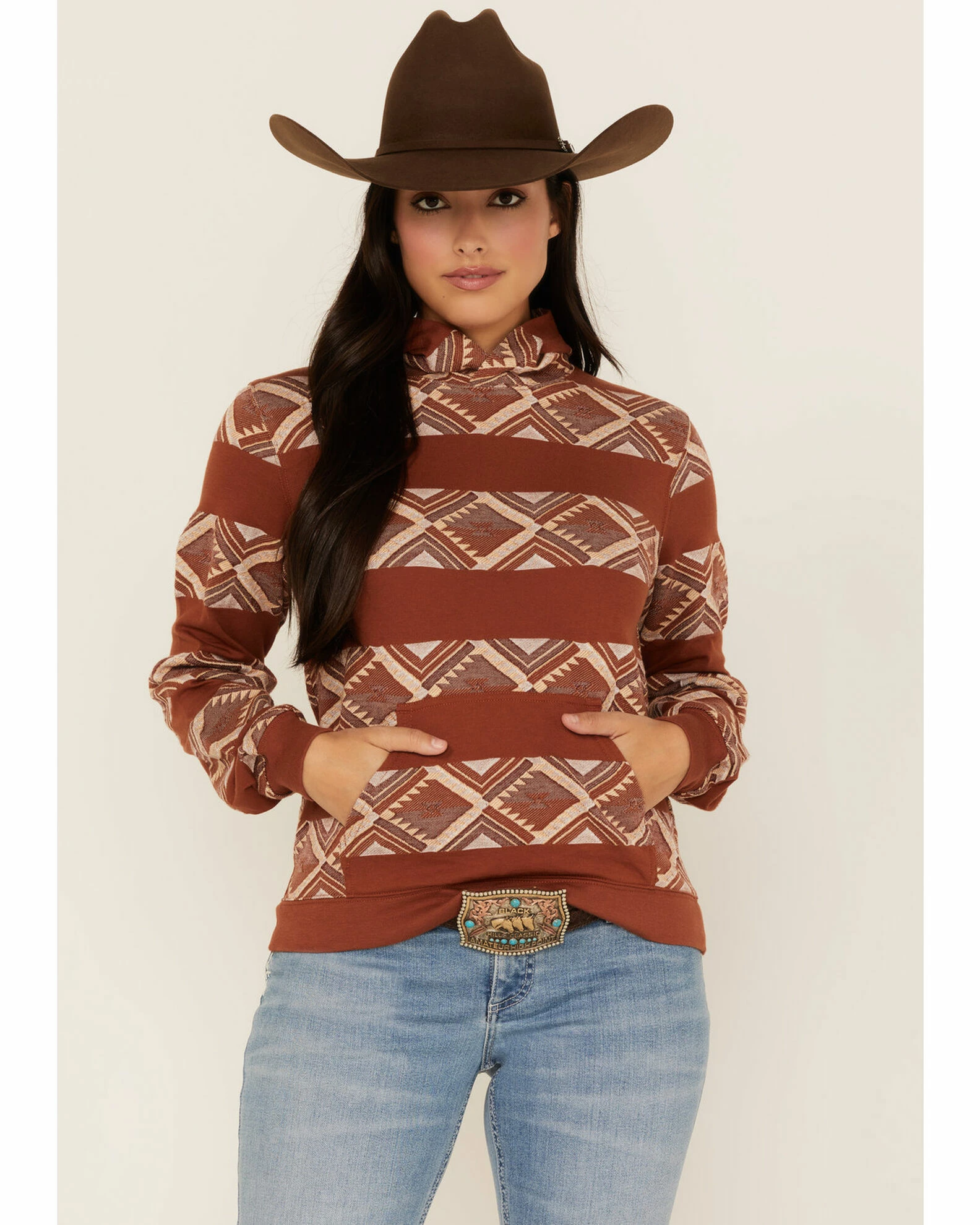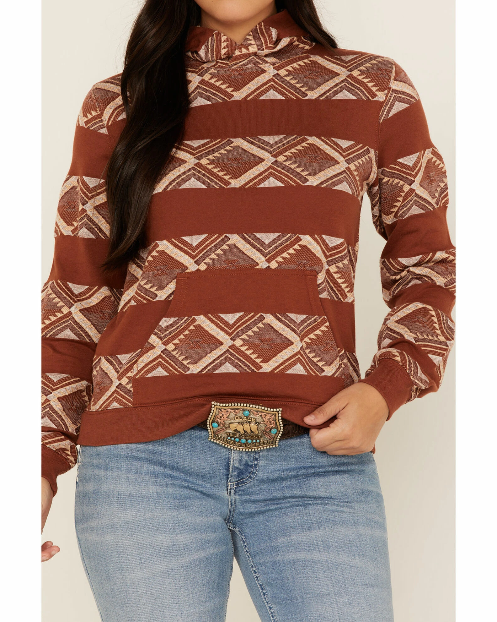 Rank 45 Women’s Southwestern Stripe Hoodie Rust Copper