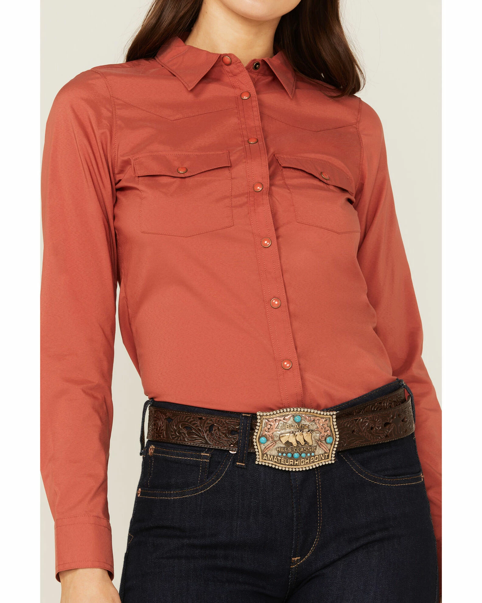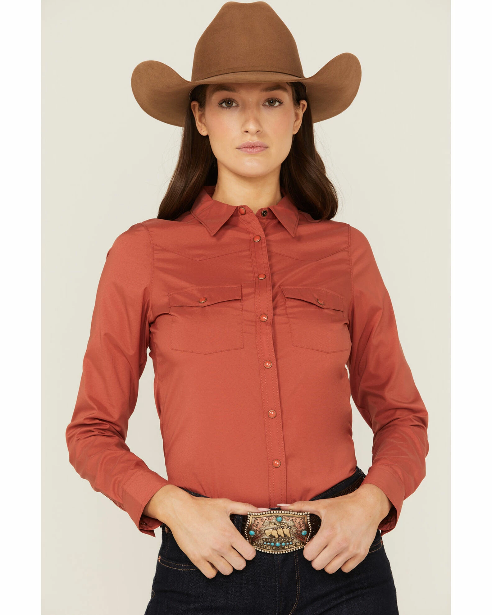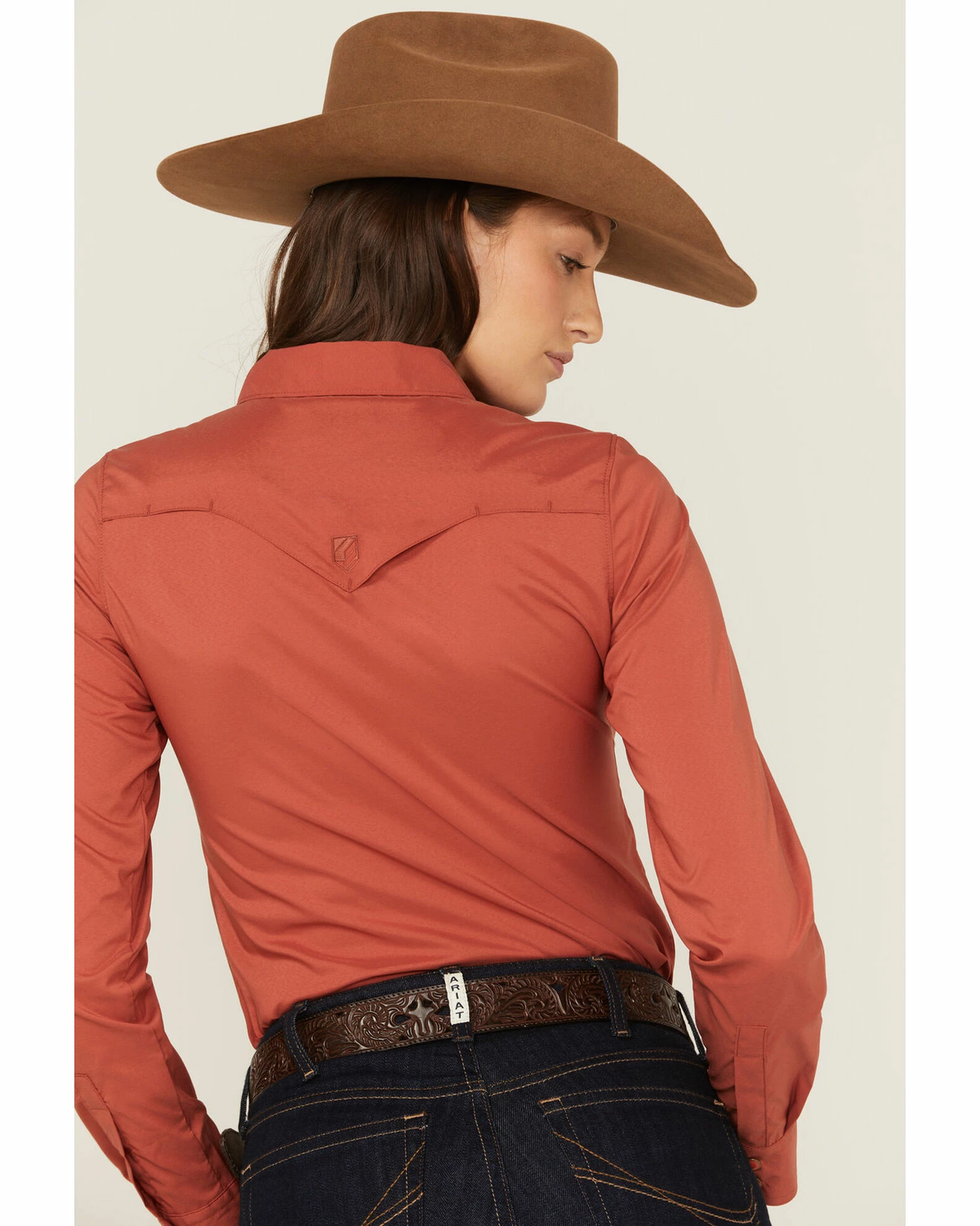 Rank 45 Women’s Vented Performance Outdoor Long Sleeve Snap Western Shirt Brick Red