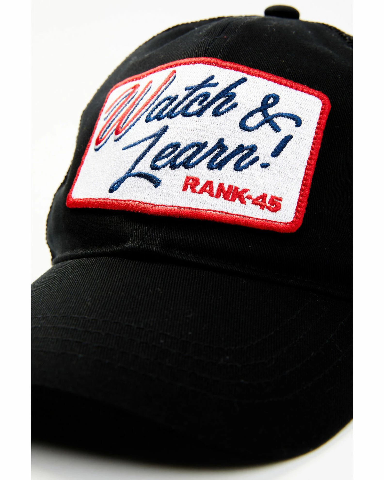 - “Watch & Learn Rank 45” logo patch and embroidered detail on front